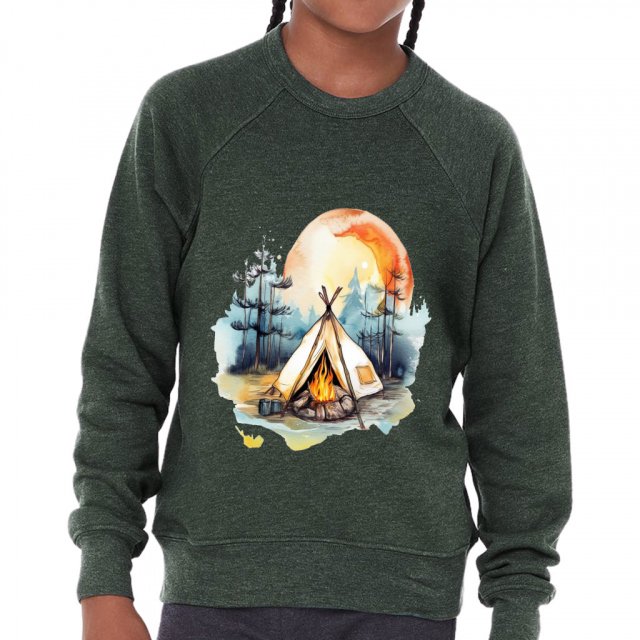 Cute Camping Kids’ Raglan Sweatshirt – Watercolor Sponge Fleece Sweatshirt – Cool Sweatshirt