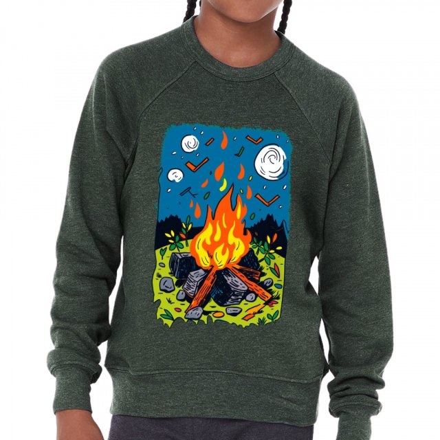 Campfire Design Kids’ Raglan Sweatshirt – Cartoon Sponge Fleece Sweatshirt – Graphic Art Sweatshirt