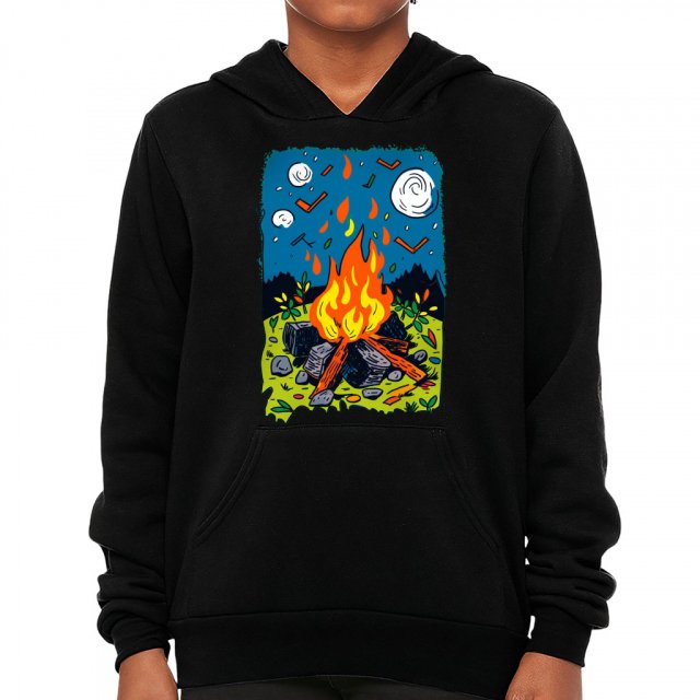 Campfire Design Kids’ Sponge Fleece Hoodie – Cartoon Kids’ Hoodie – Graphic Art Hoodie for Kids
