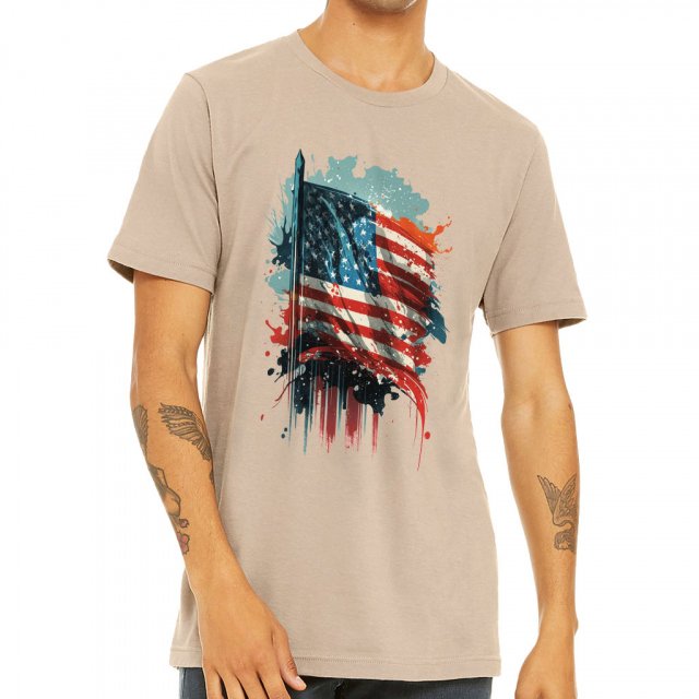 Cotton-Polyester material makes the best combination which is made especially for comfortable clothes. This composition makes Land Of the Free Sueded T-Shirt very soft on the body. Natural fiber lets your skin breathe. It also absorbs moisture to keep your body temperature stable.