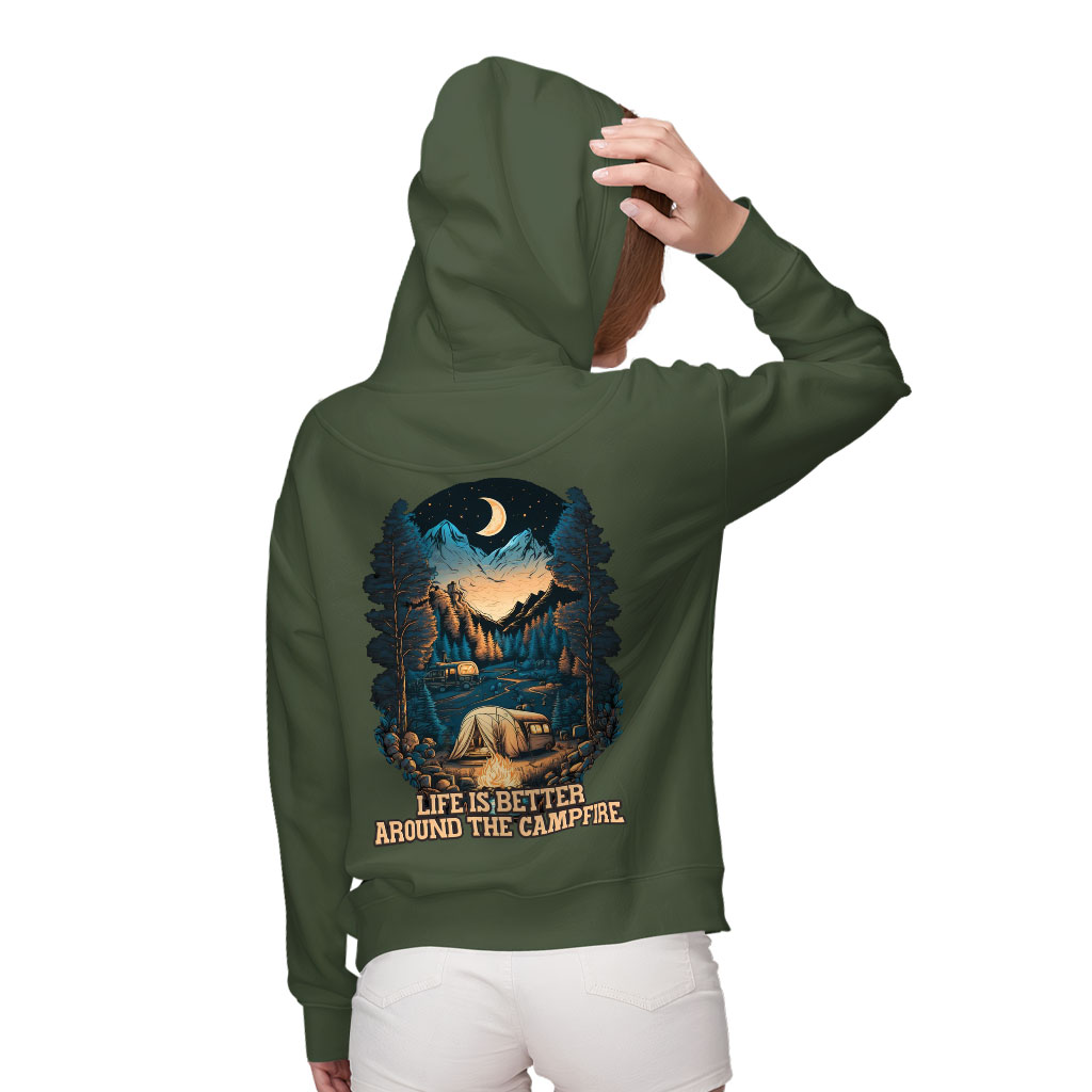 Life Is Better Around the Campfire Women’s Zip Hoodie – Nature Design Hooded Sweatshirt – Trendy Hoodie