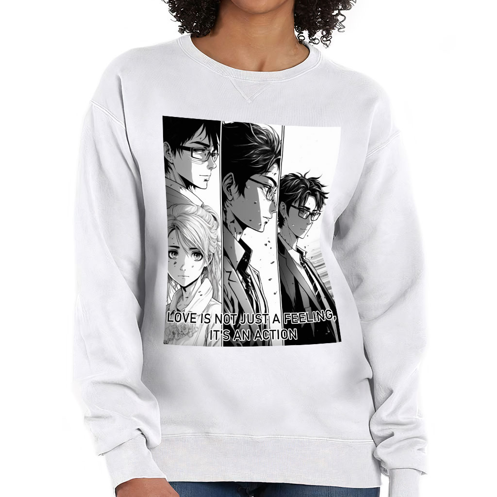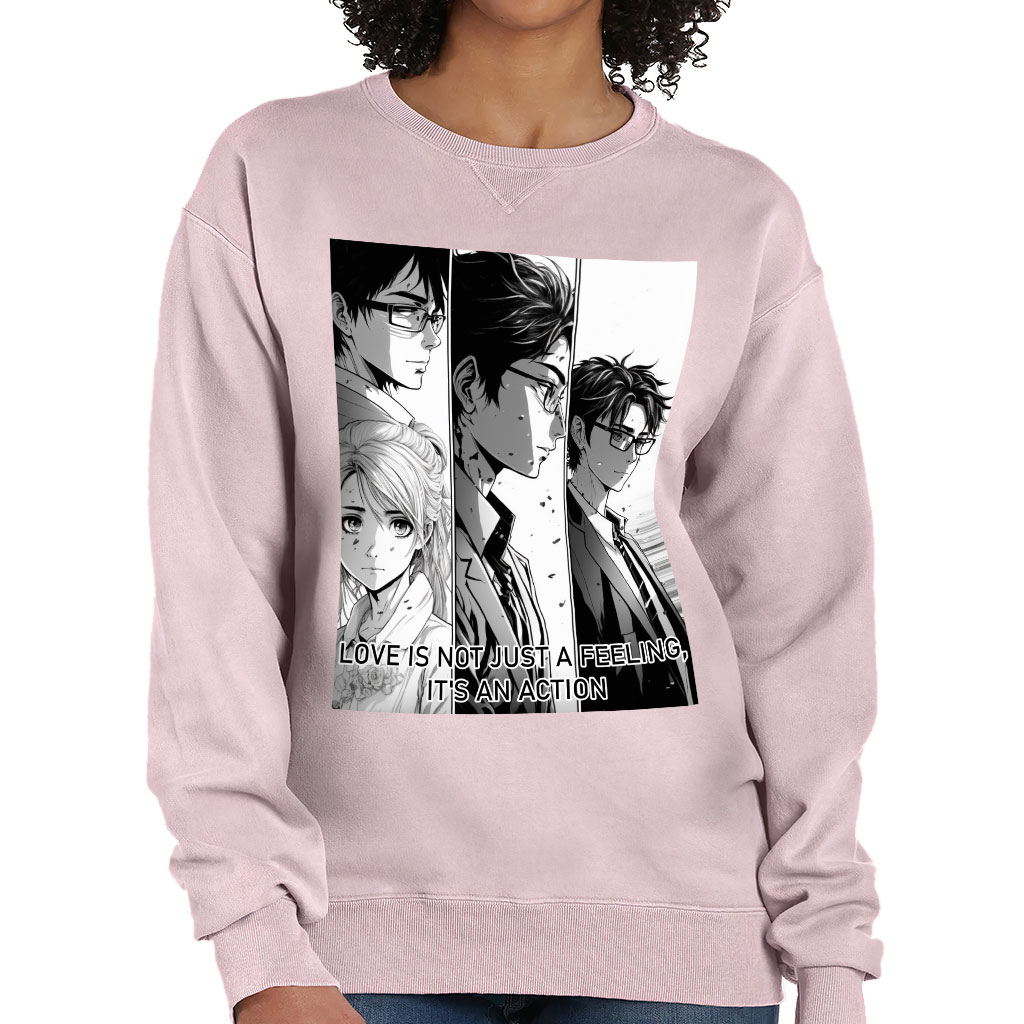 Love Is Not Just a Feeling Crewneck Sweatshirt – Character Women’s Sweatshirt – Quote Sweatshirt