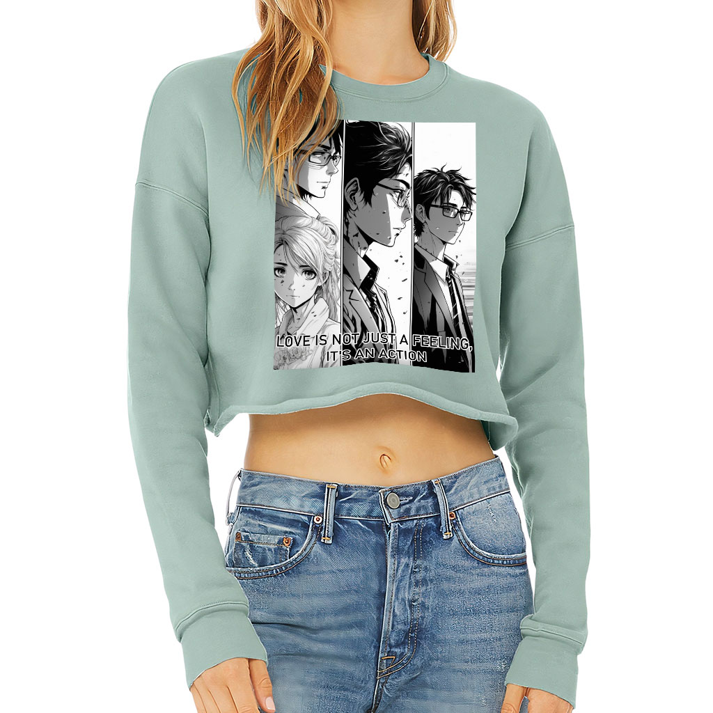 Love Is Not Just a Feeling Cropped Sweatshirt – Character Women’s Sweatshirt – Quote Crop Crew Sweatshirt