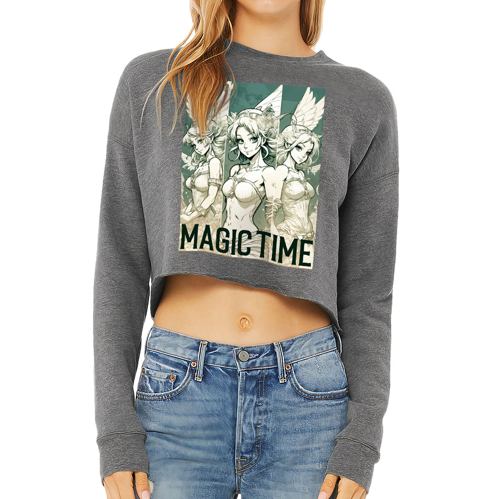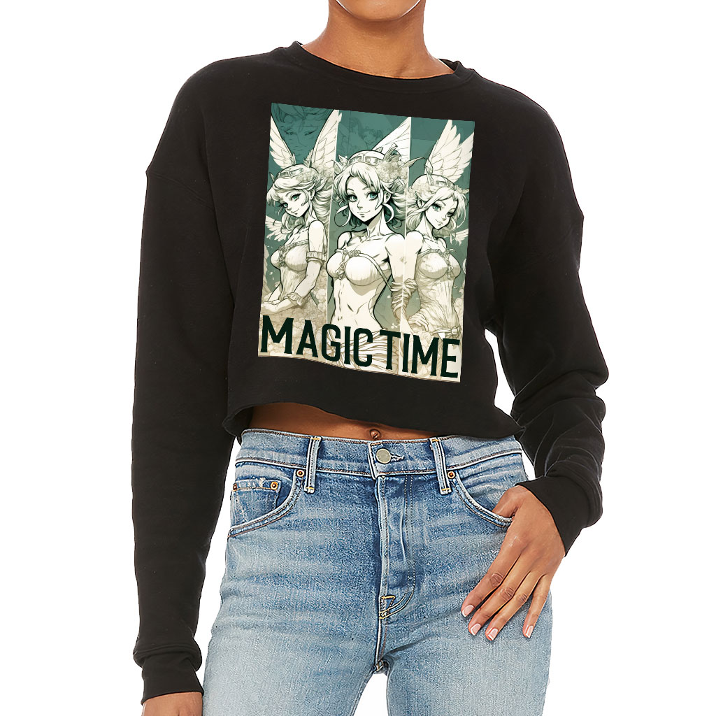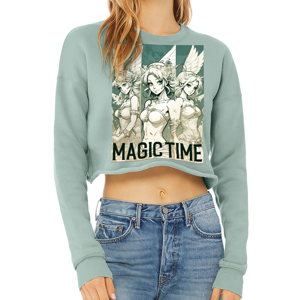 Magic Time Cropped Sweatshirt – Cartoon Women’s Sweatshirt – Girl Art Crop Crew Sweatshirt