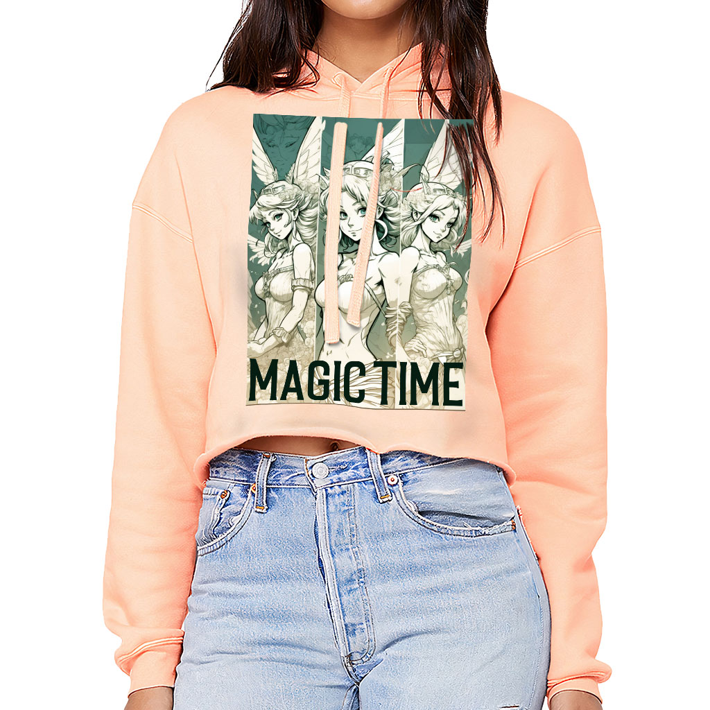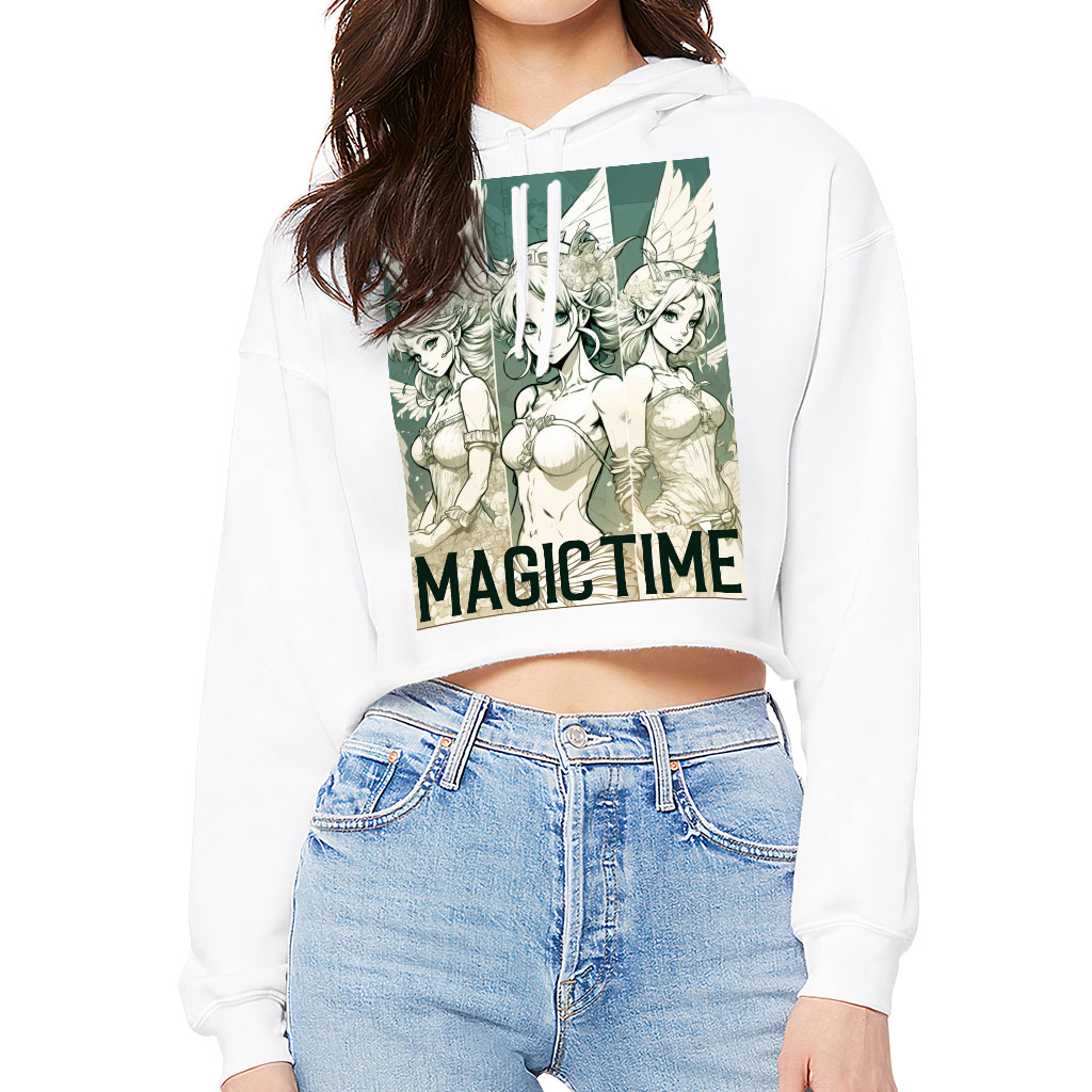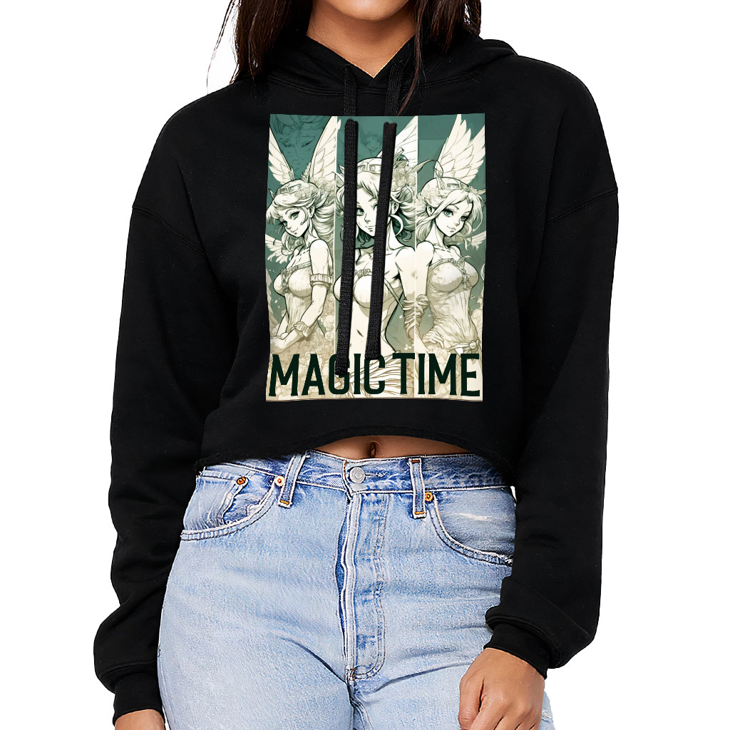 Magic Time Women’s Cropped Hoodie – Cartoon Cropped Hoodie – Girl Art Hooded Sweatshirt