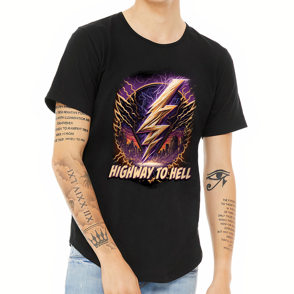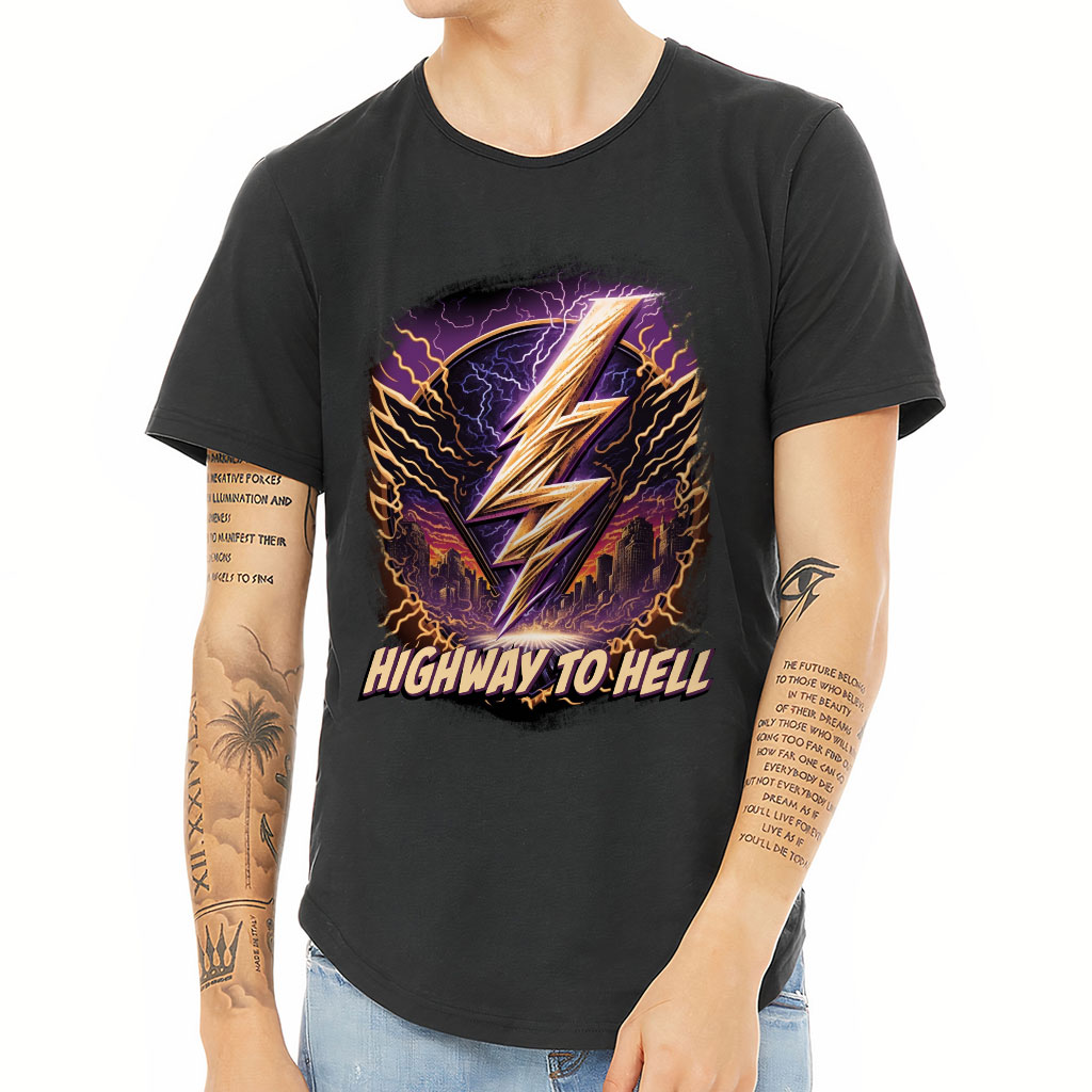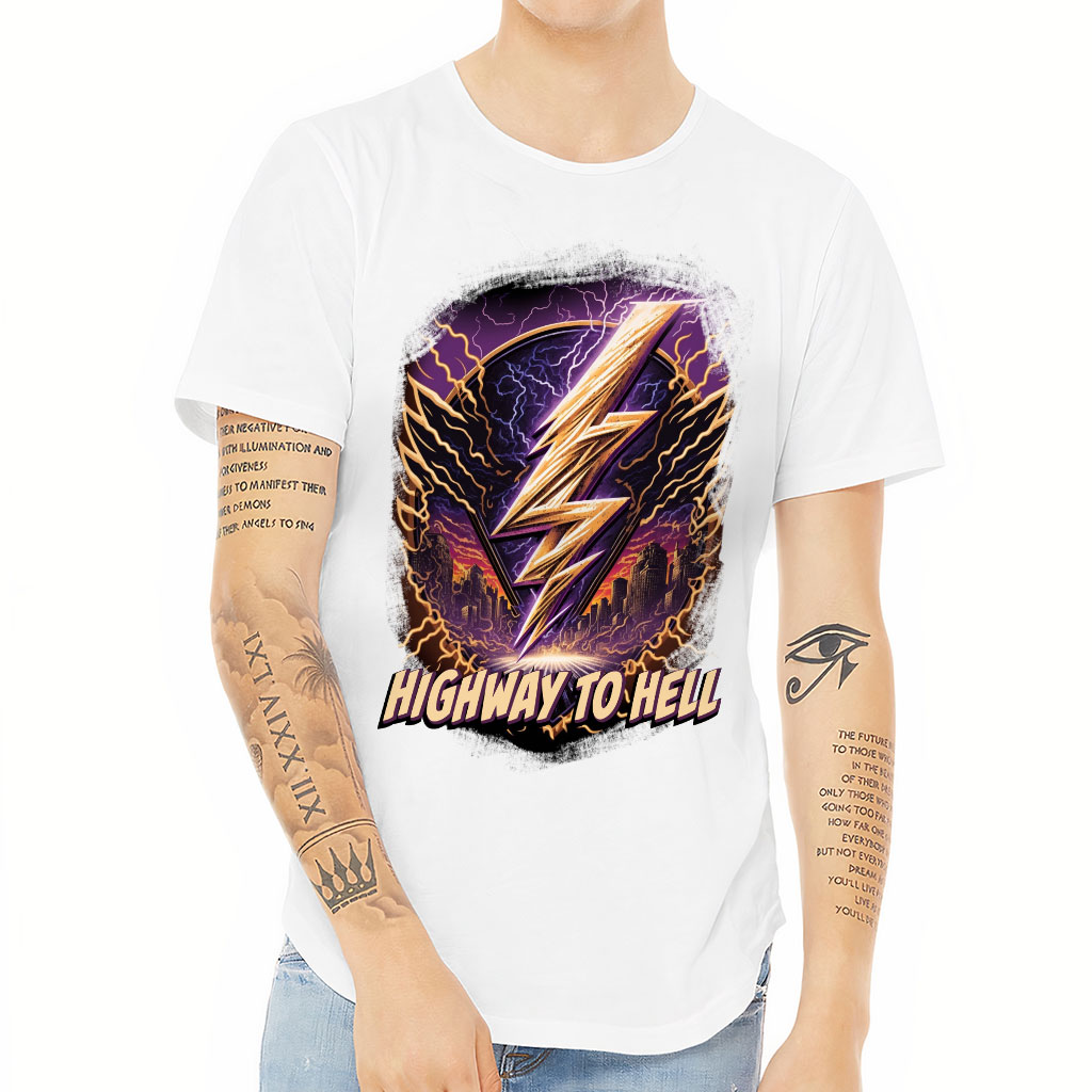 day? Check out Cityscape T-Shirt! Lightning Curved Hem Tee is perfect for men who want to look