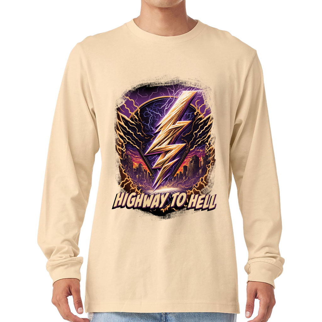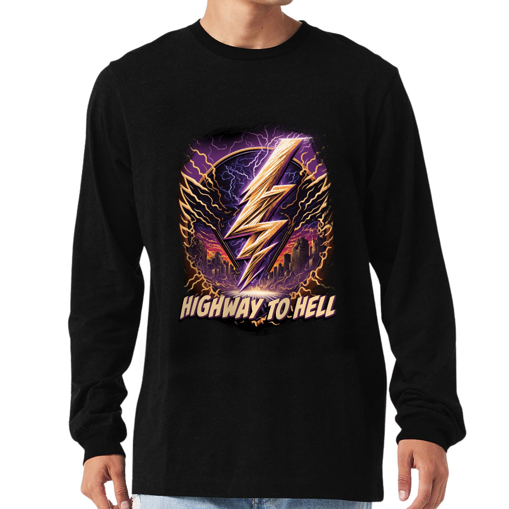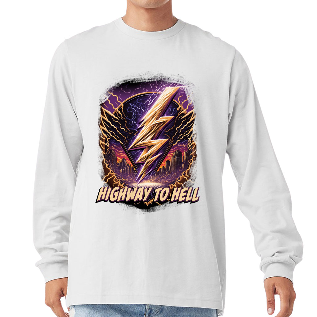 Music Design Long Sleeve T-Shirt – Cityscape T-Shirt – Lightning Long Sleeve Tee