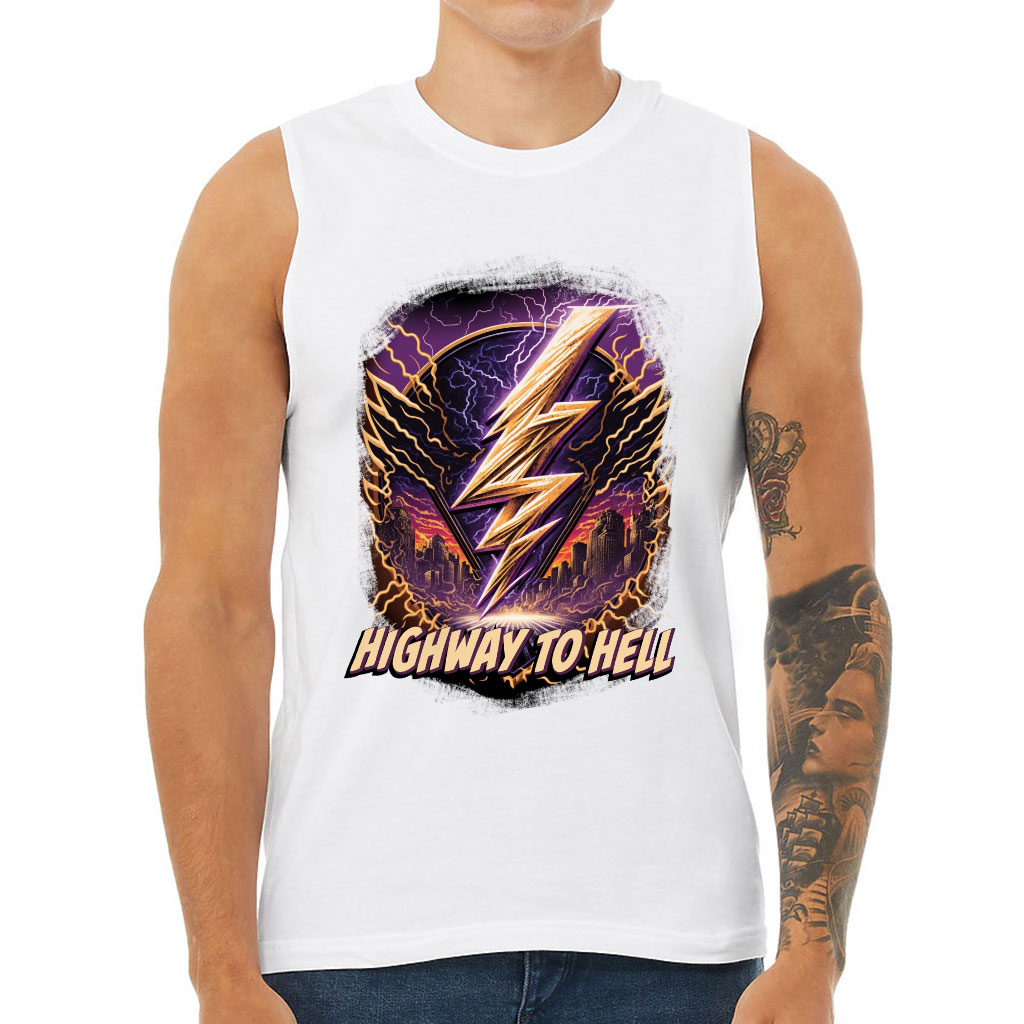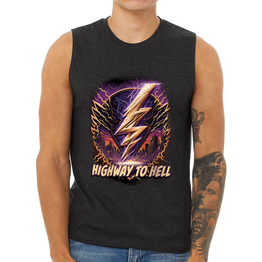 Music Design Men’s Muscle Tank – Cityscape Men’s Sleeveless T-Shirt – Lightning Tank
