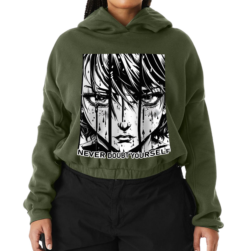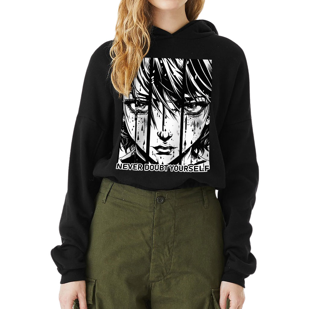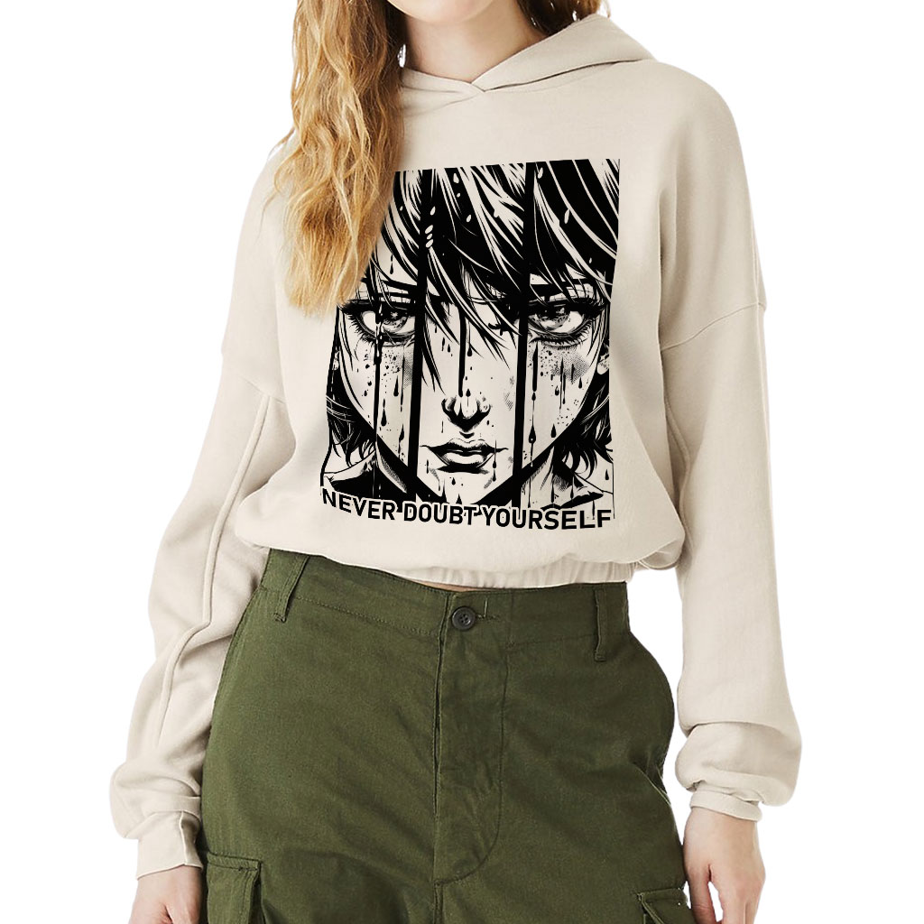 Never Doubt Yourself Cinched Bottom Hoodie – Girl Art Women’s Hoodie – Cartoon Hooded Sweatshirt