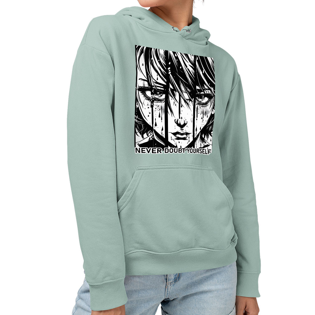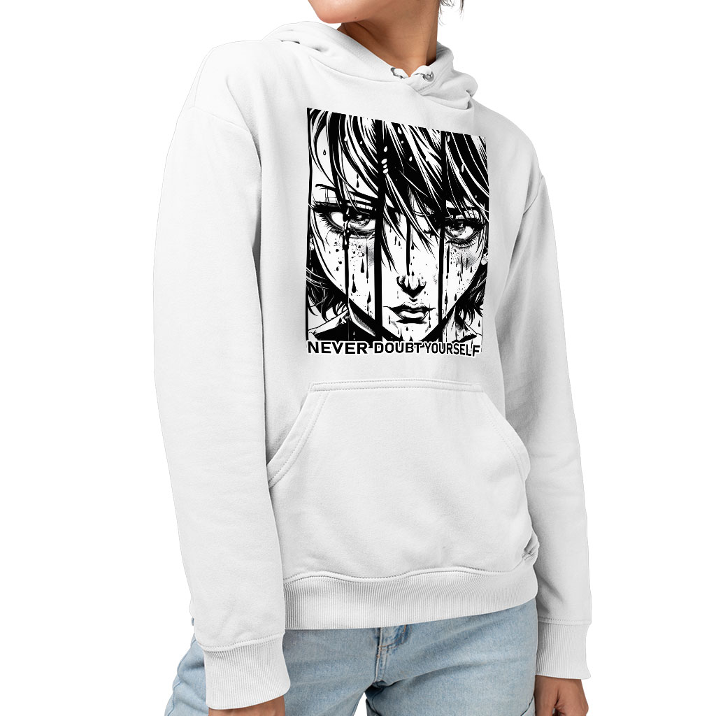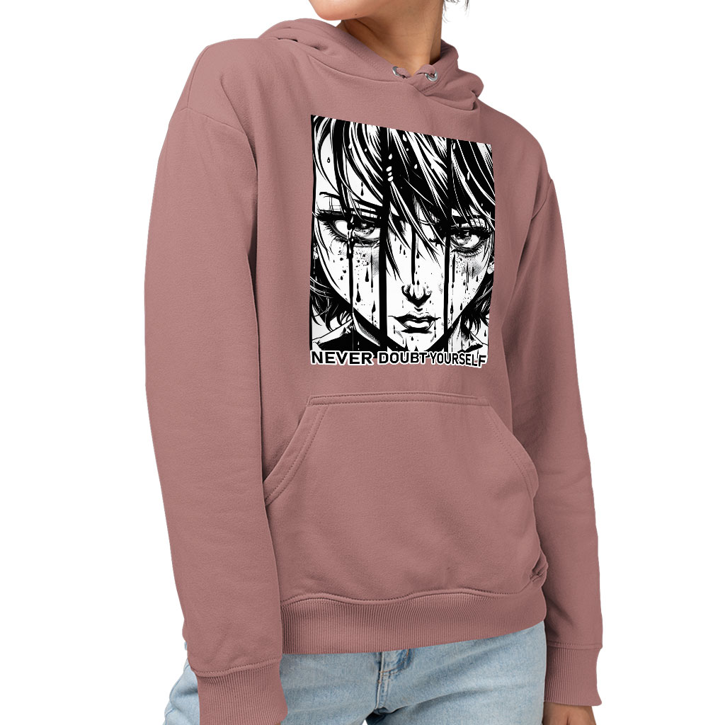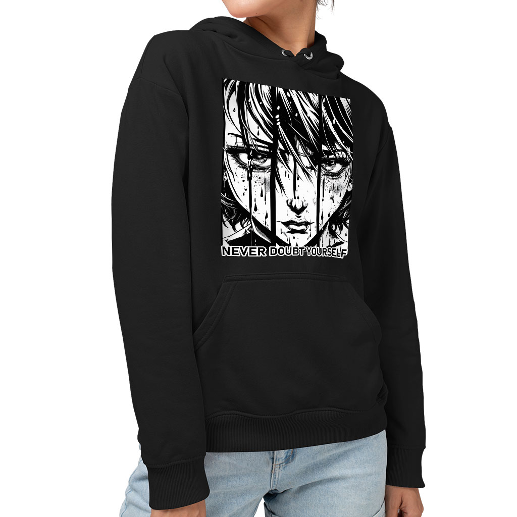 Never Doubt Yourself Sponge Fleece Hoodie – Girl Art Hoodie – Cartoon Hooded Sweatshirt
