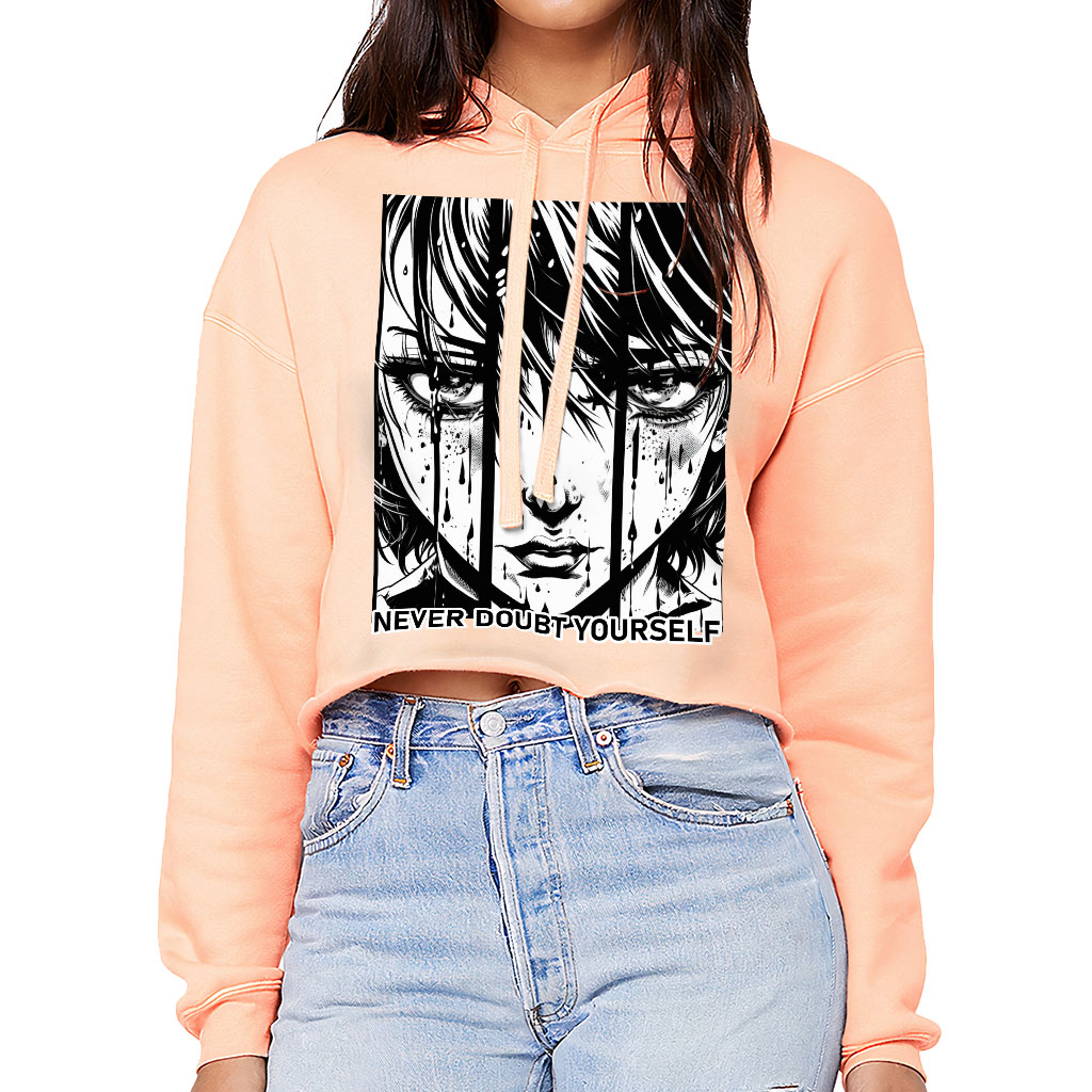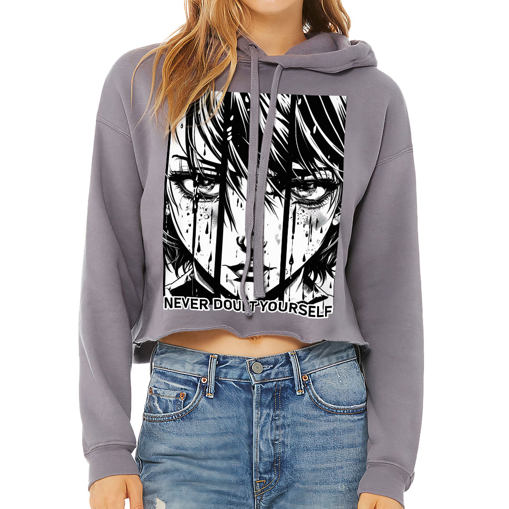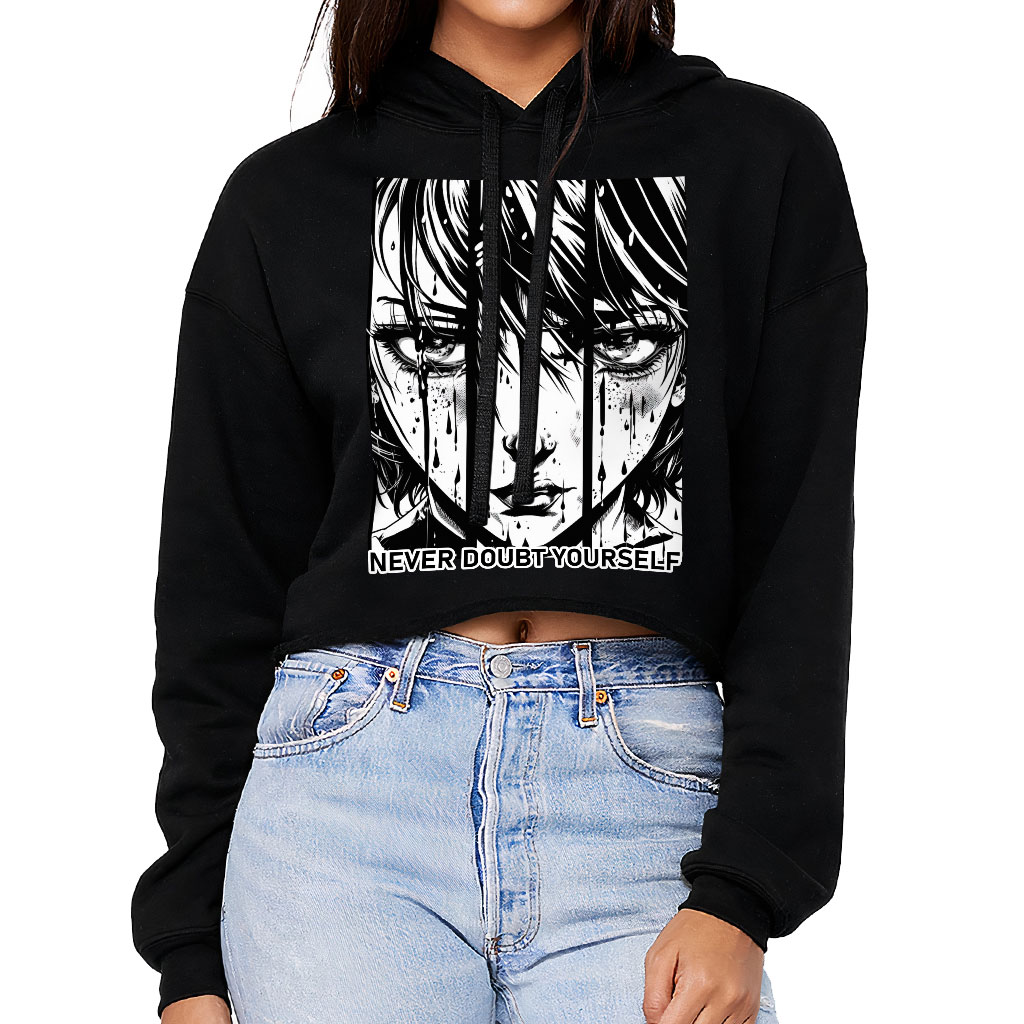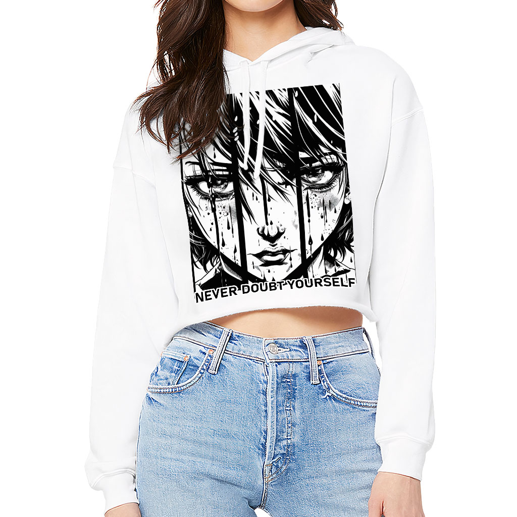 Never Doubt Yourself Women’s Cropped Hoodie – Girl Art Cropped Hoodie – Cartoon Hooded Sweatshirt