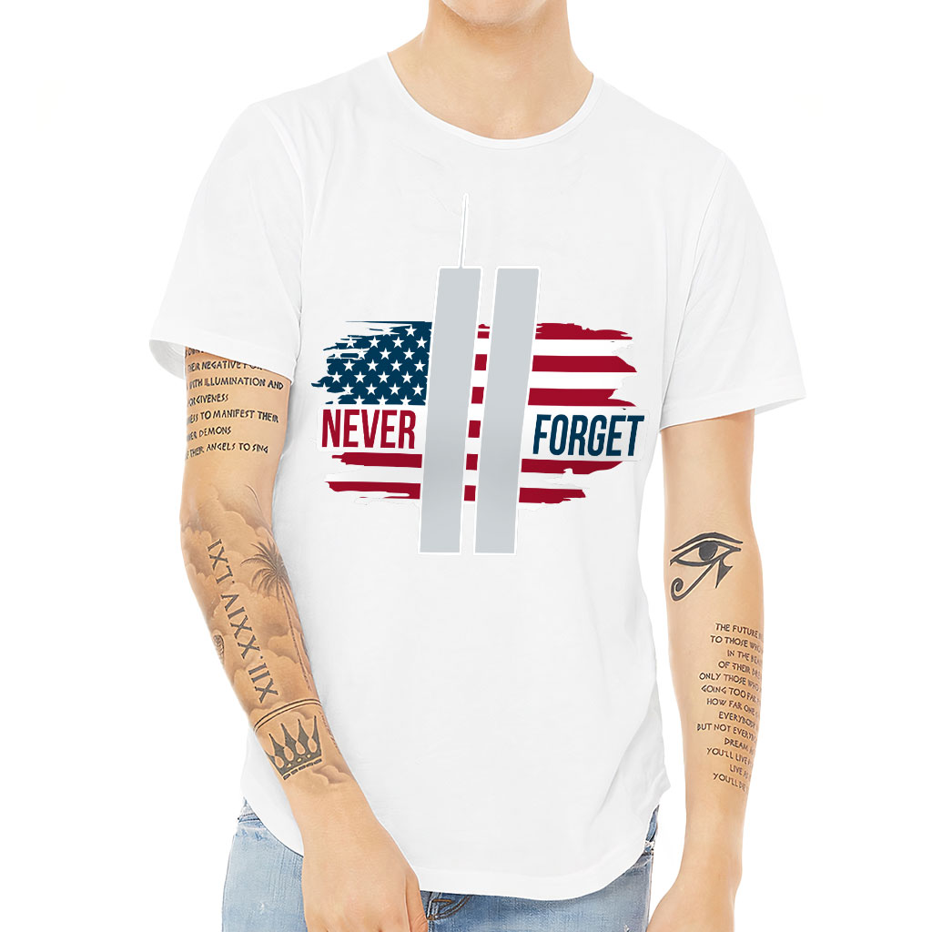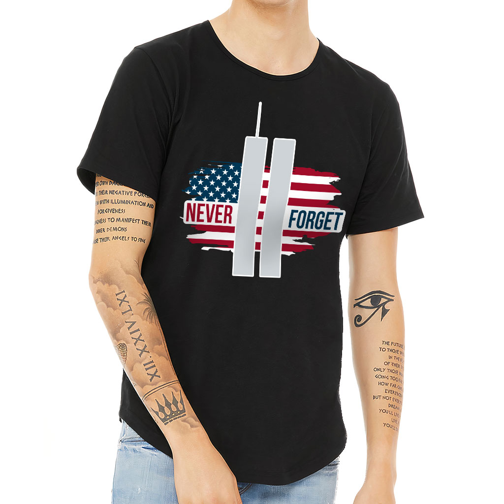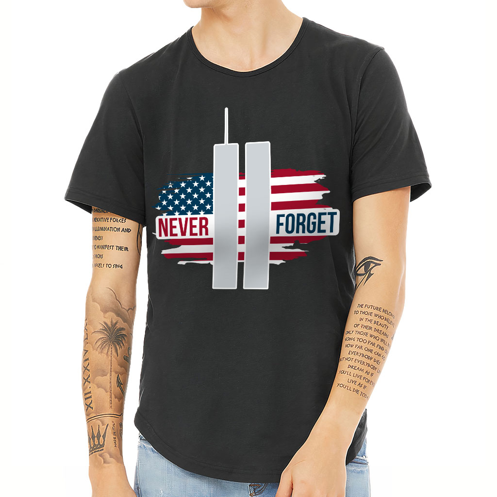 Never Forget Curved Hem T-Shirt – America T-Shirt – Flag Curved Hem Tee