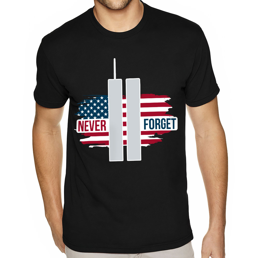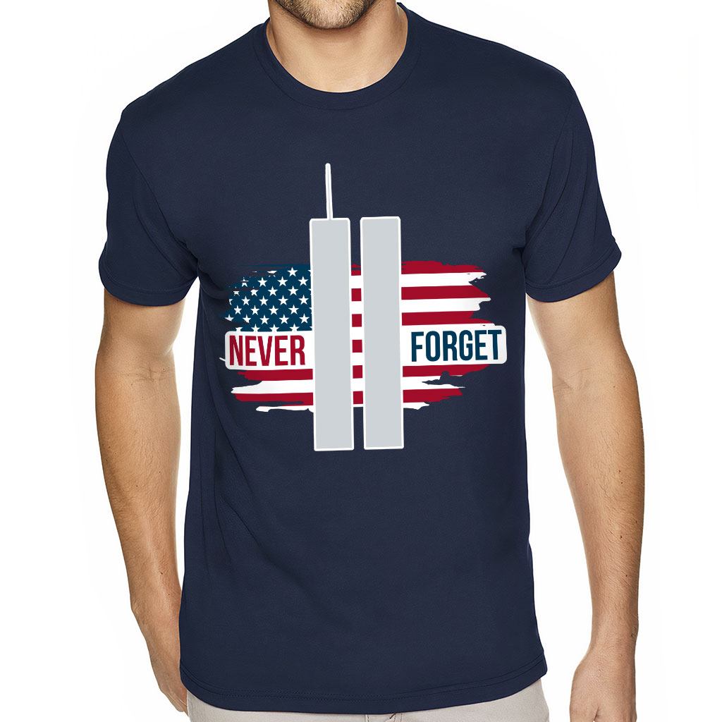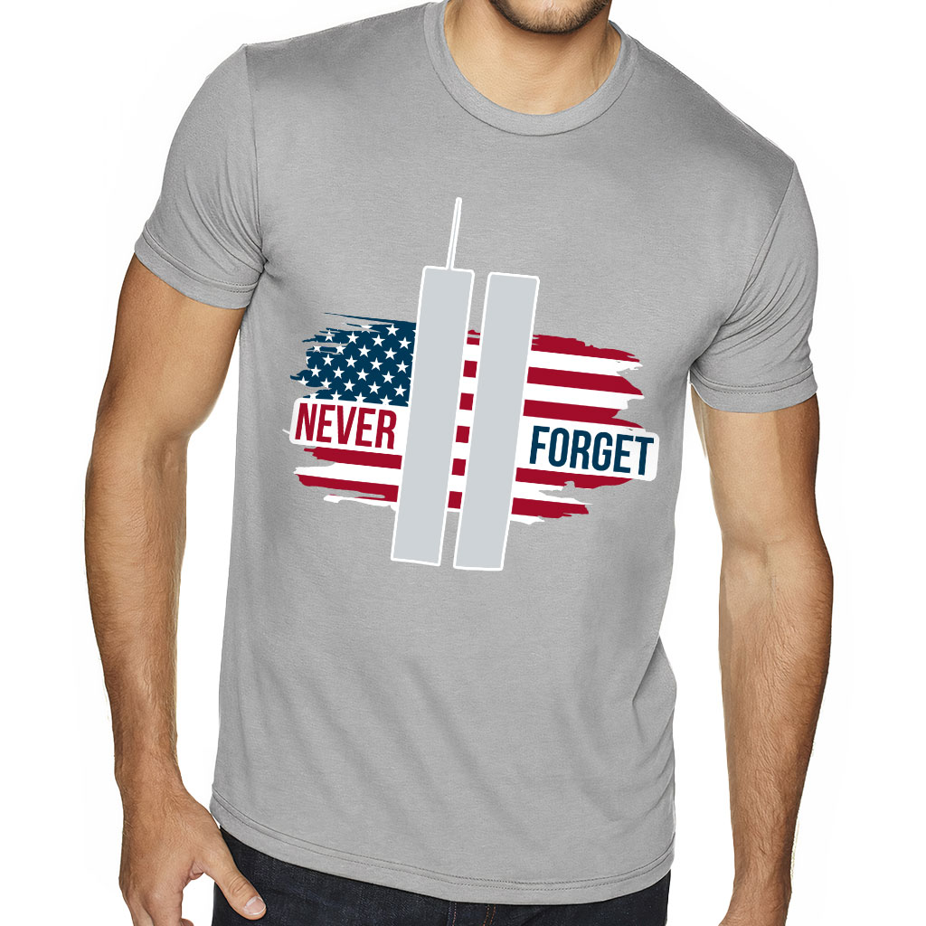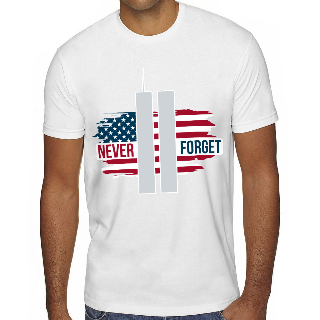 Never Forget Sueded T-Shirt – America T-Shirt – Flag Sueded Tee