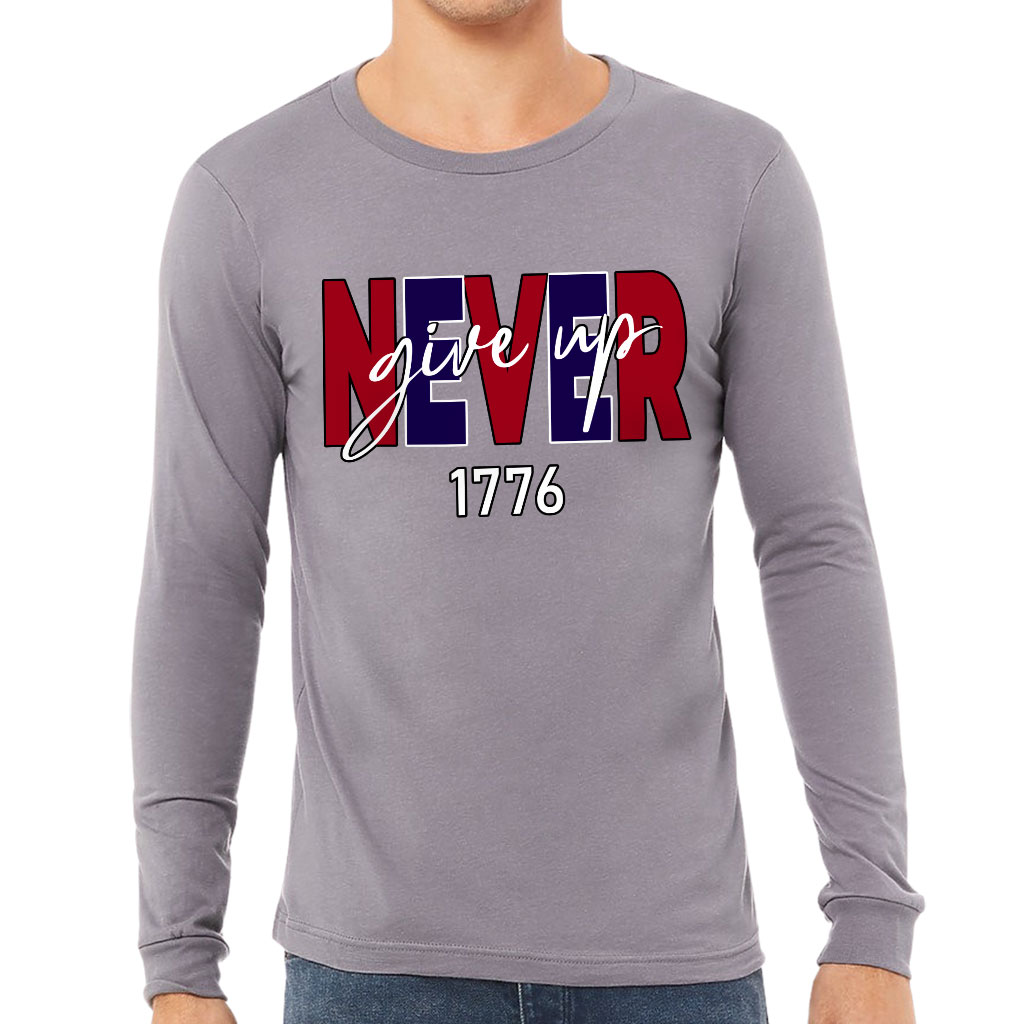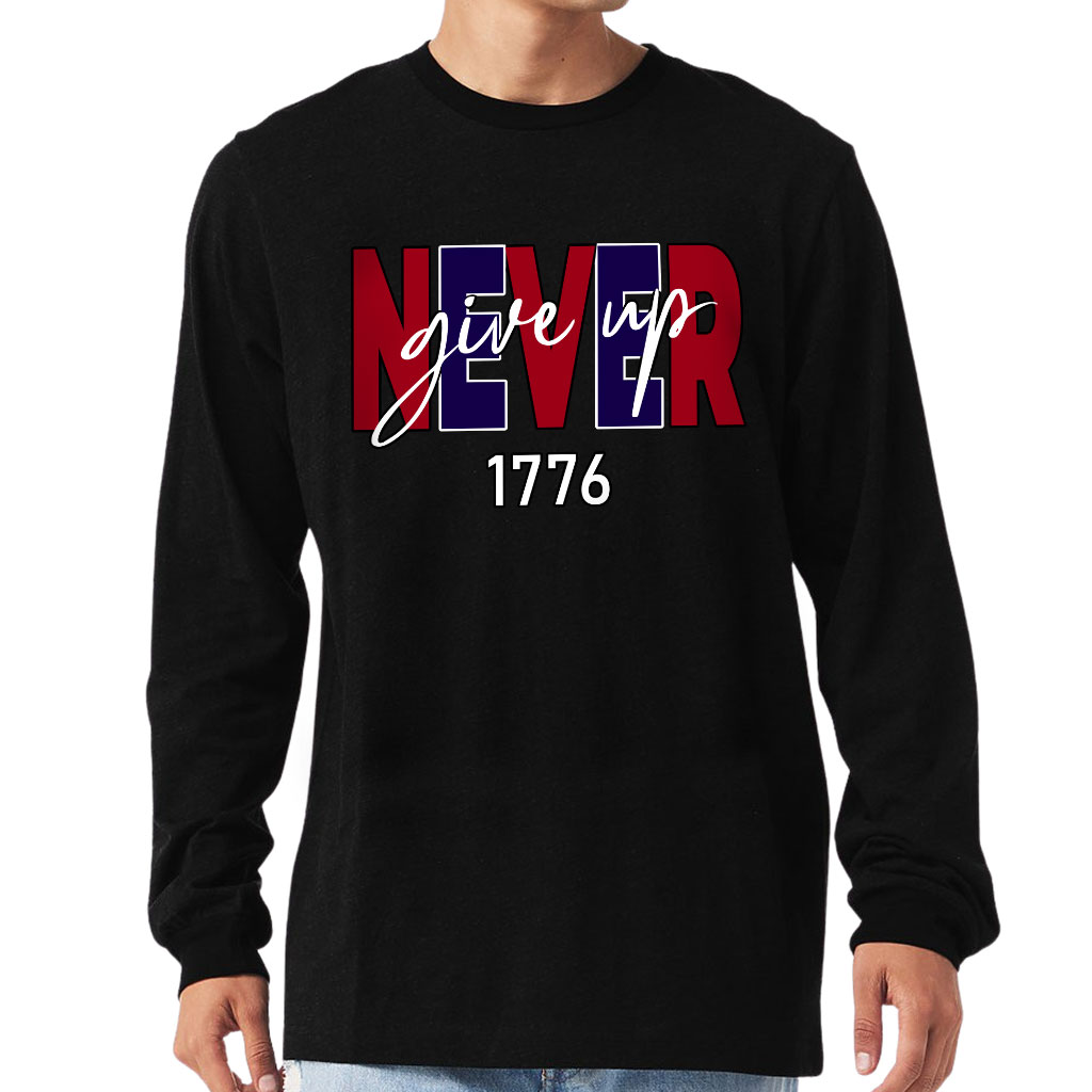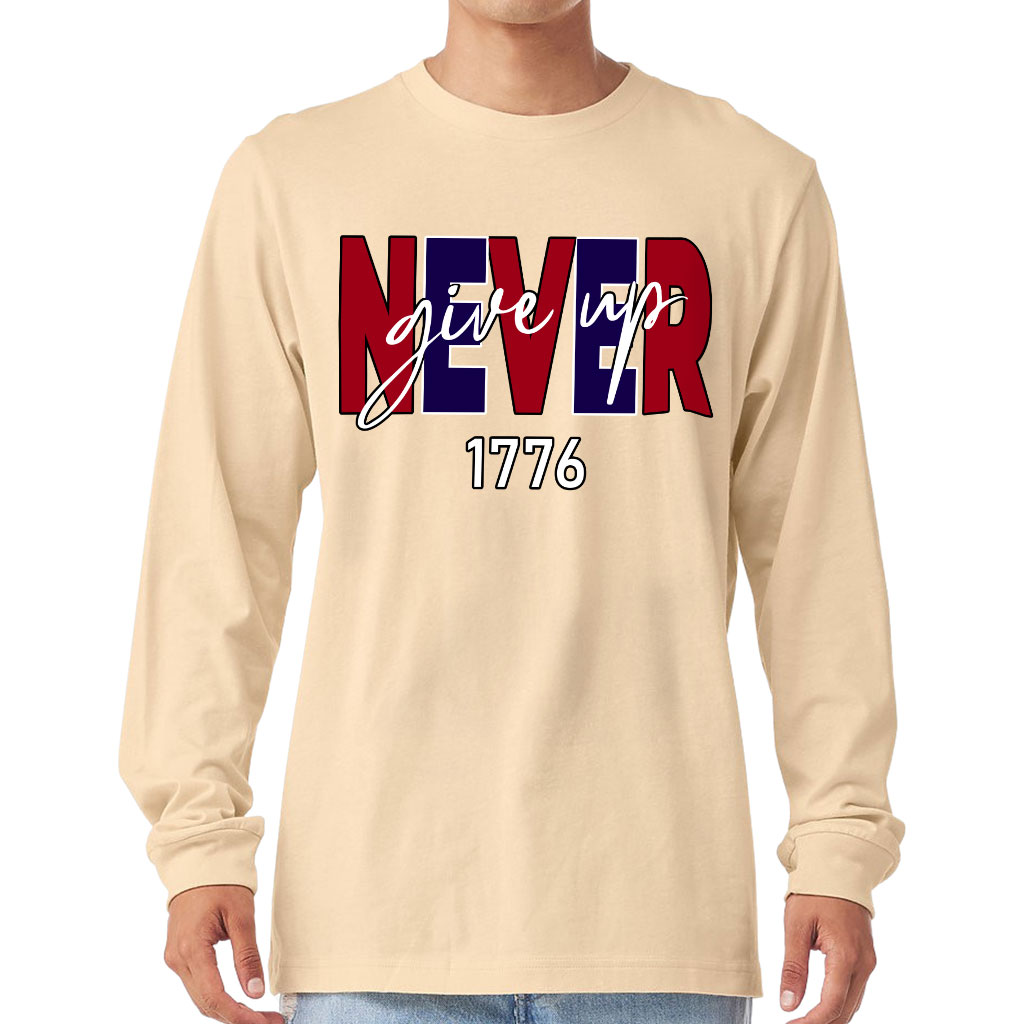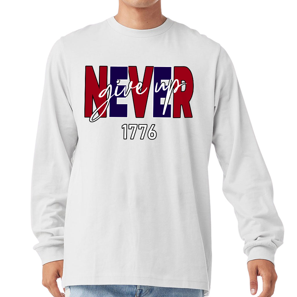 Never Give Up Long Sleeve T-Shirt – USA T-Shirt – America Long Sleeve Tee