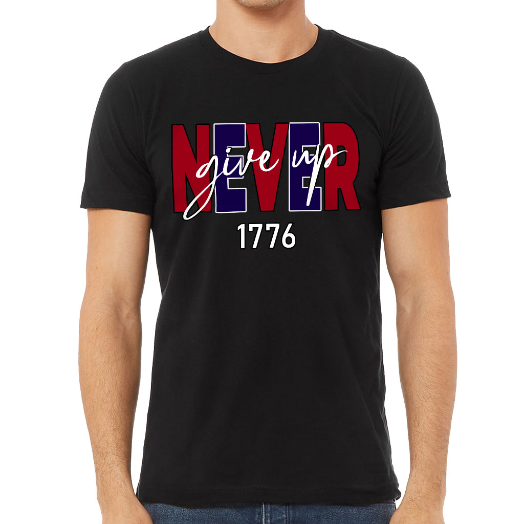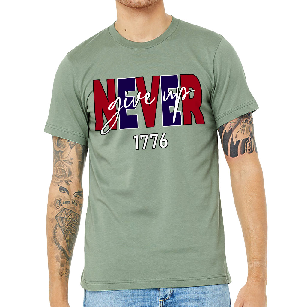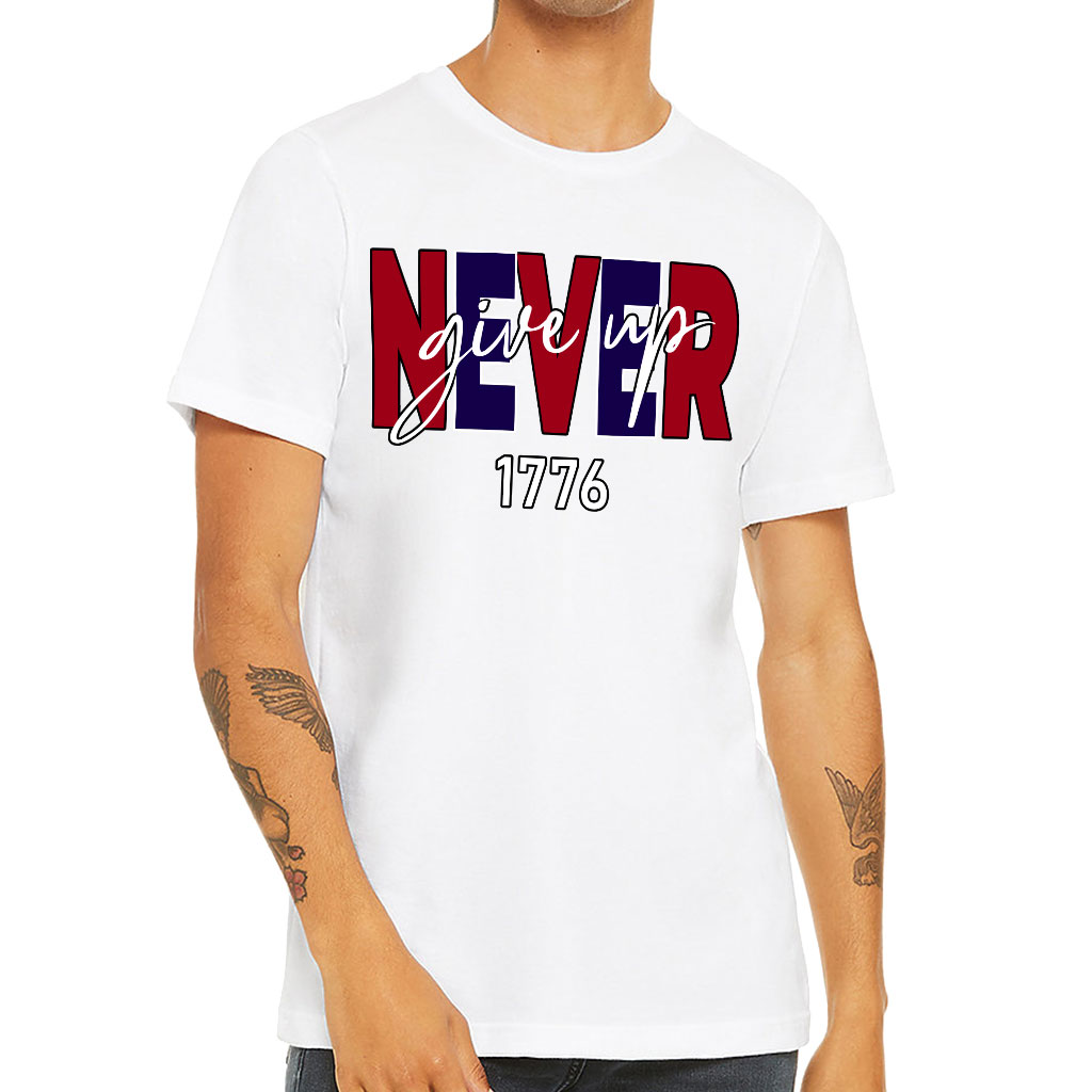 Never Give Up Short Sleeve T-Shirt – USA T-Shirt – America Short Sleeve Tee