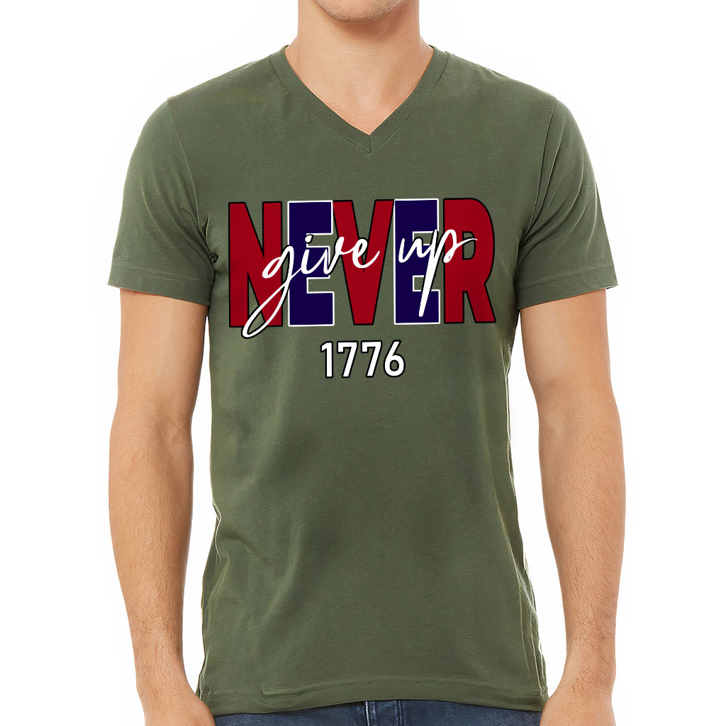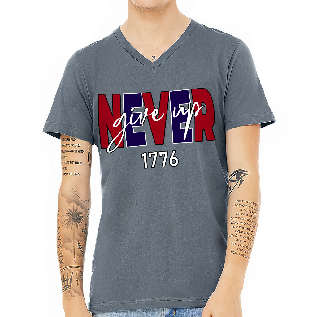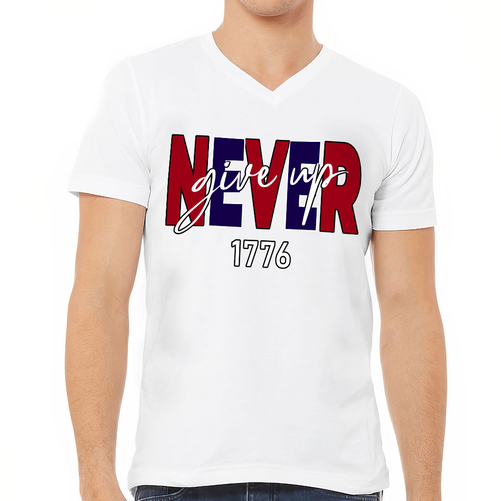 Never Give Up V-Neck T-Shirt – USA T-Shirt – America V-Neck Tee