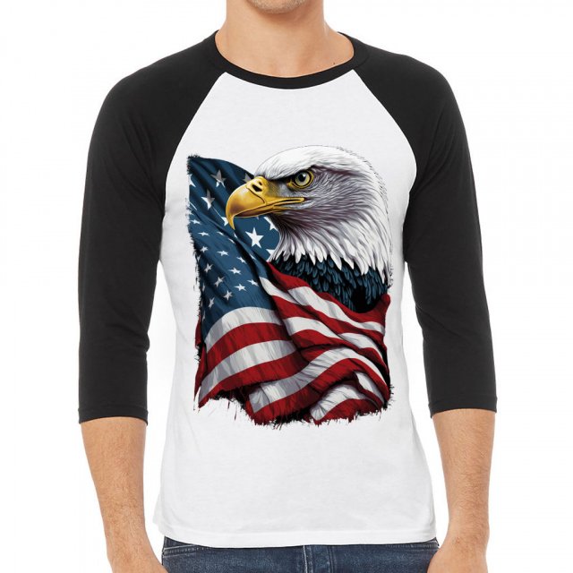 Bald Eagle Baseball T-Shirt – Bird T-Shirt – USA Flag Baseball Tee