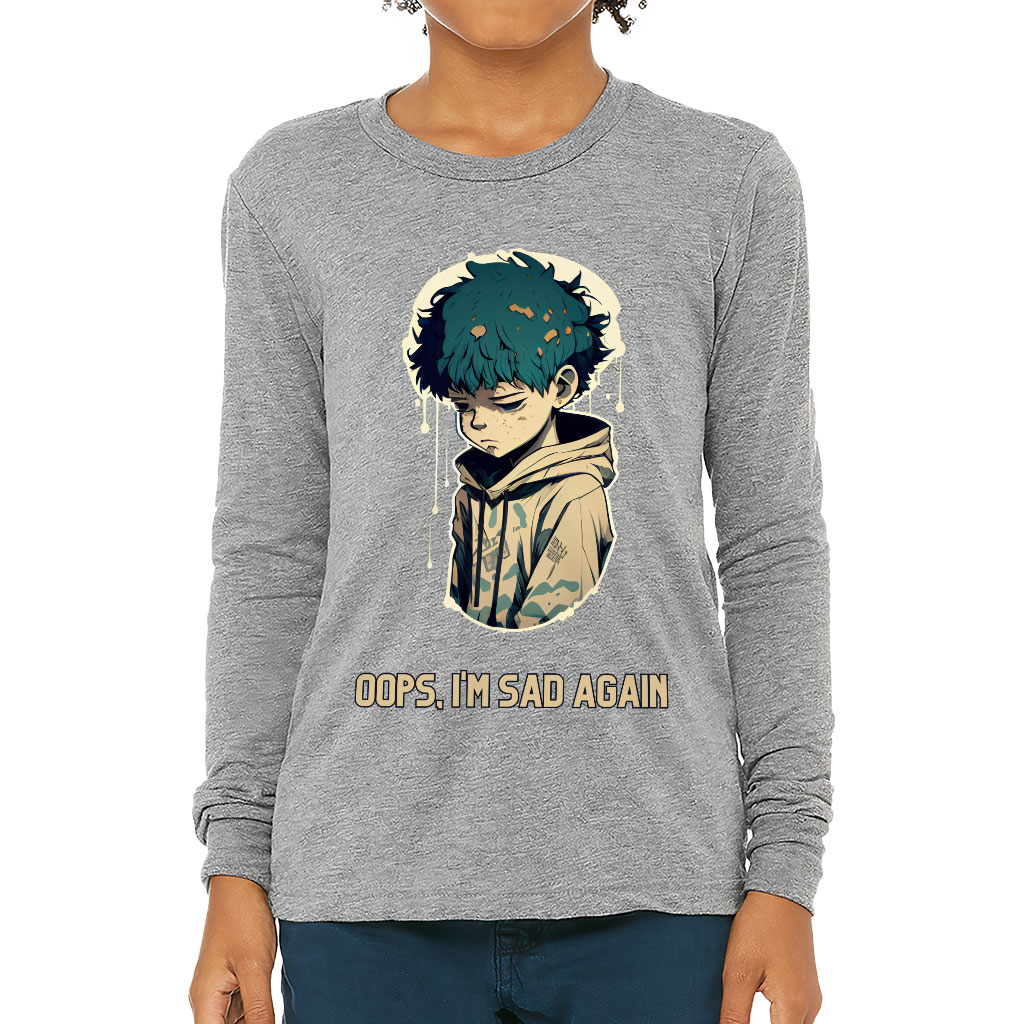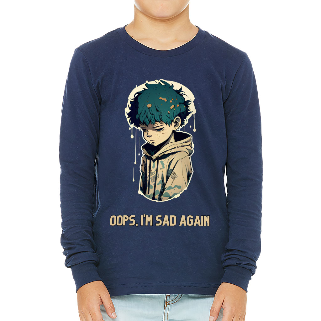 Oops I’m Sad Again Kids’ Long Sleeve T-Shirt – Print T-Shirt – Art Long Sleeve Tee