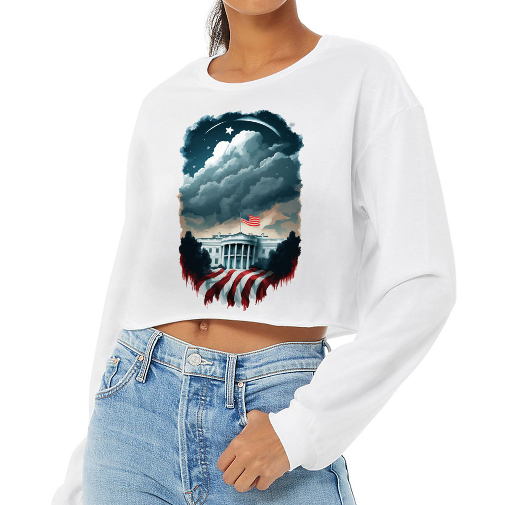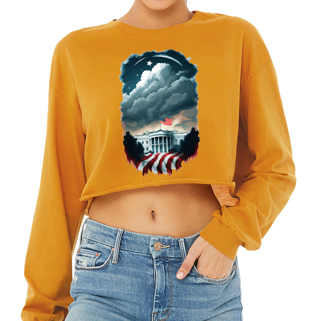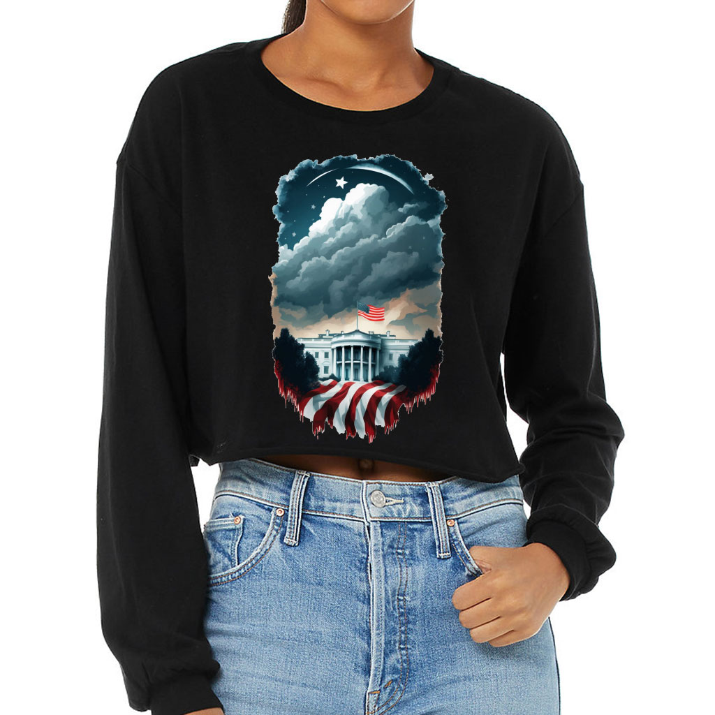 Patriotic Cropped Long Sleeve T-Shirt – USA Lovers Items – Cool Gifts