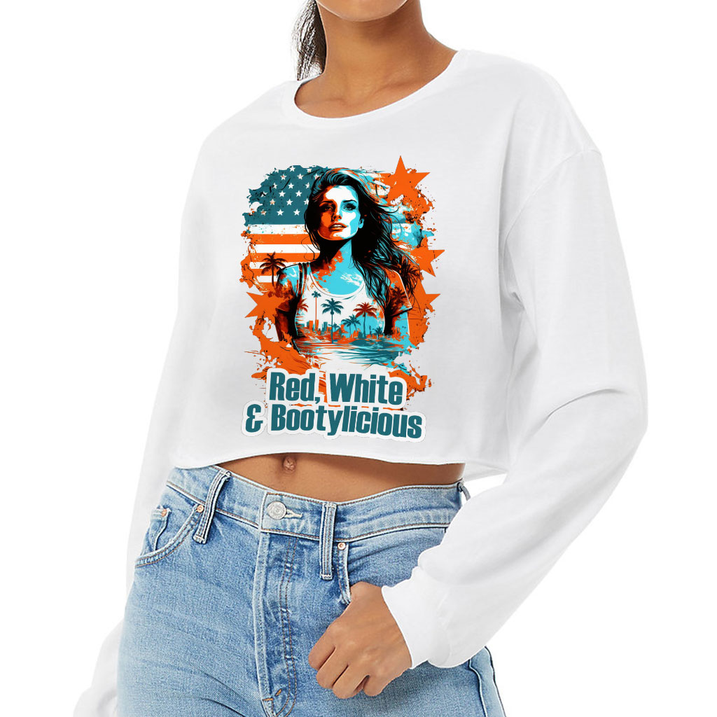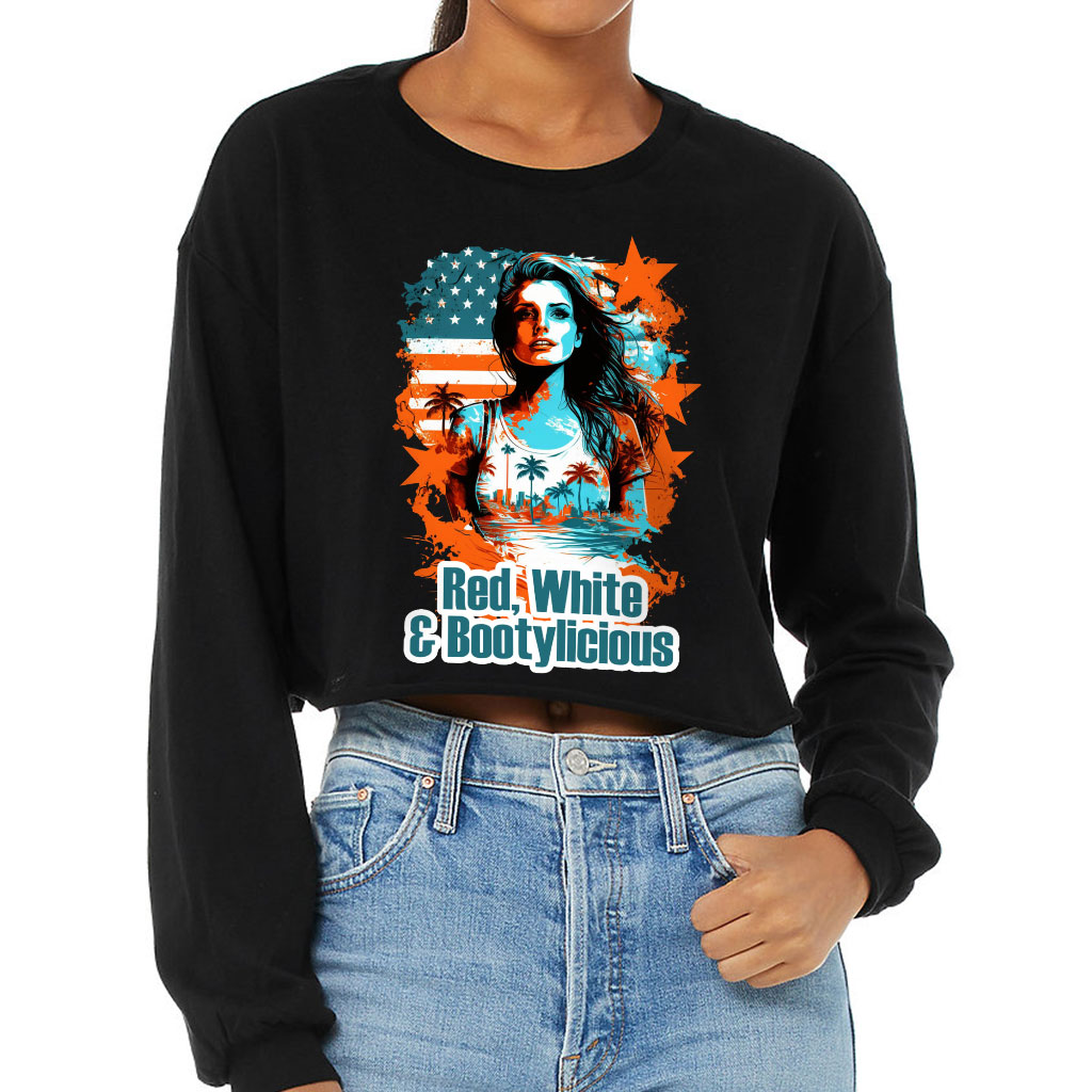 Patriotic Design Cropped Long Sleeve T-Shirt – American Themed Gifts – Great Item