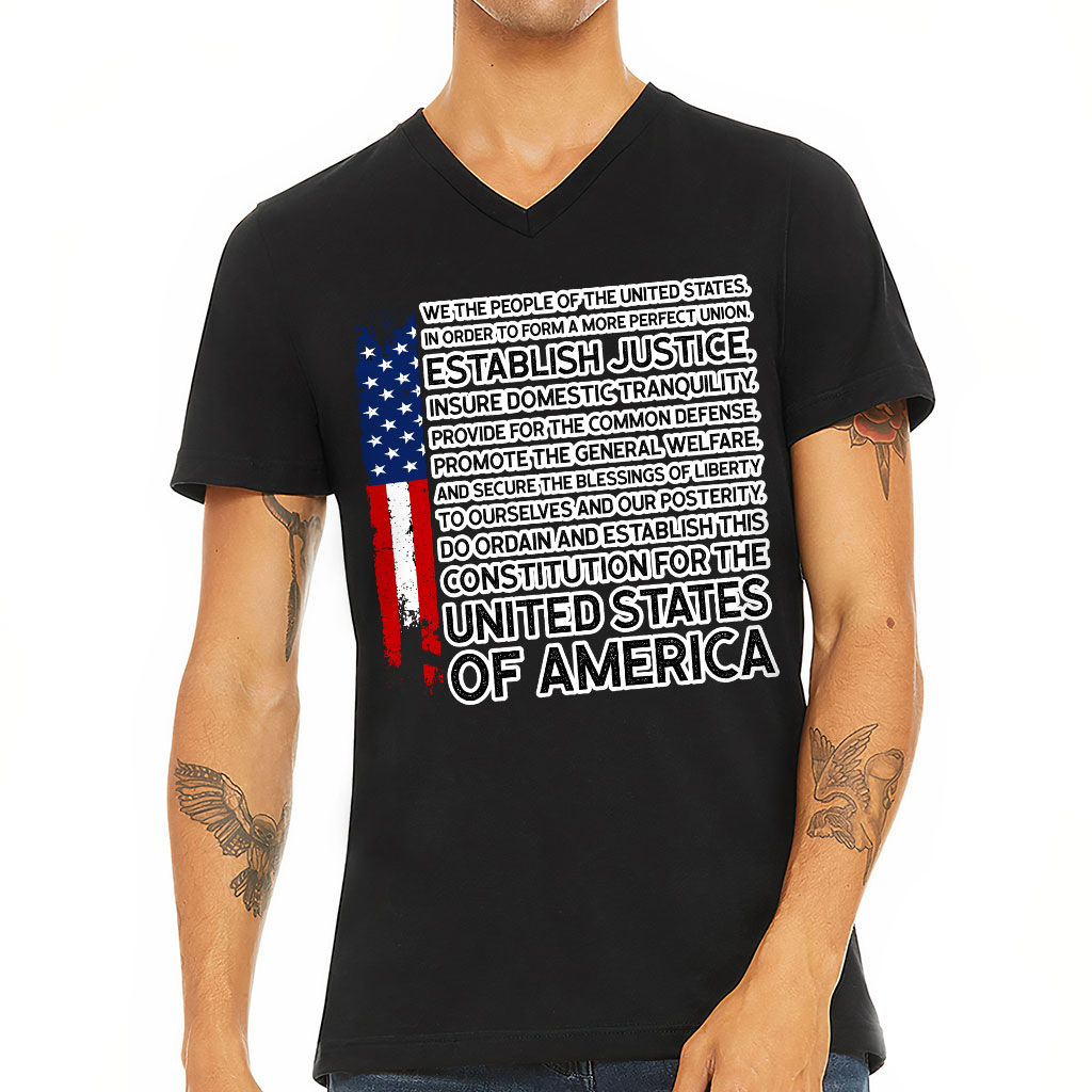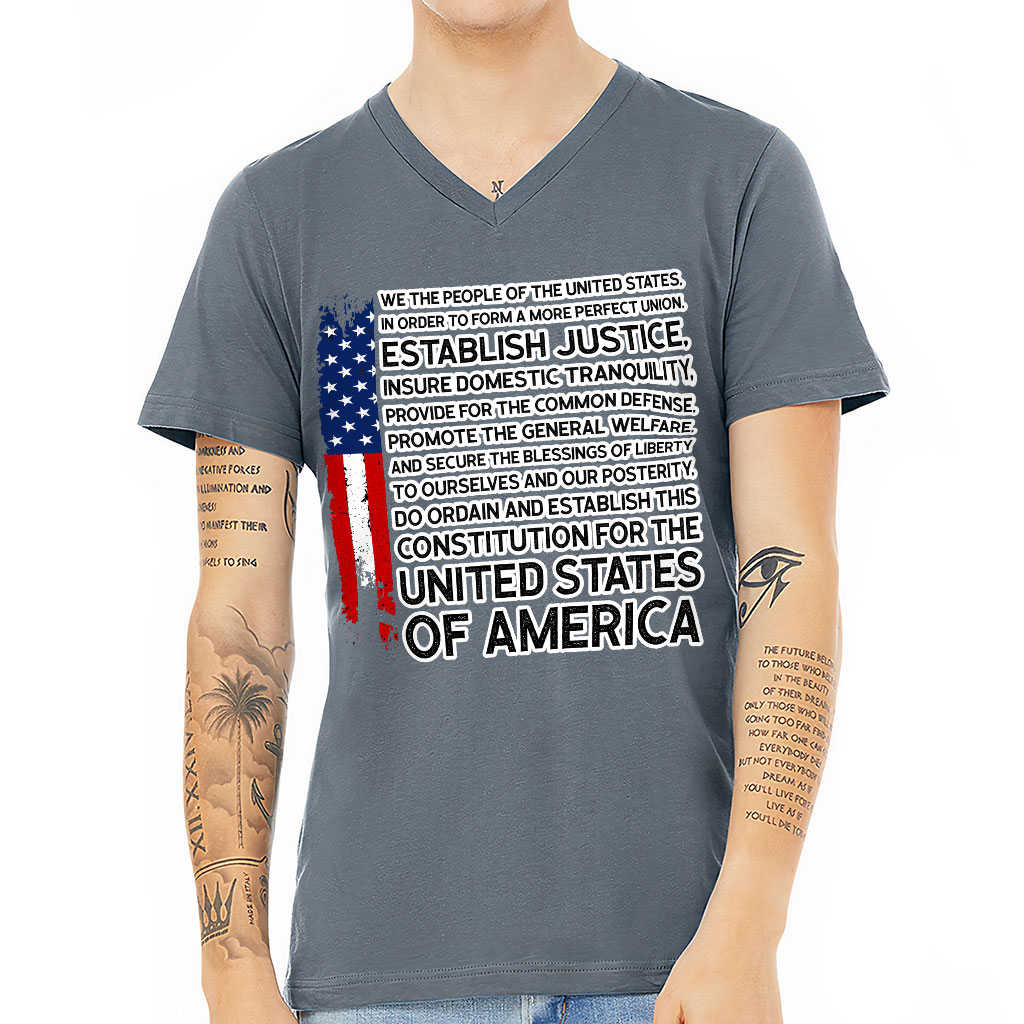 Patriotic Design V-Neck T-Shirt – Word Art T-Shirt – Graphic V-Neck Tee