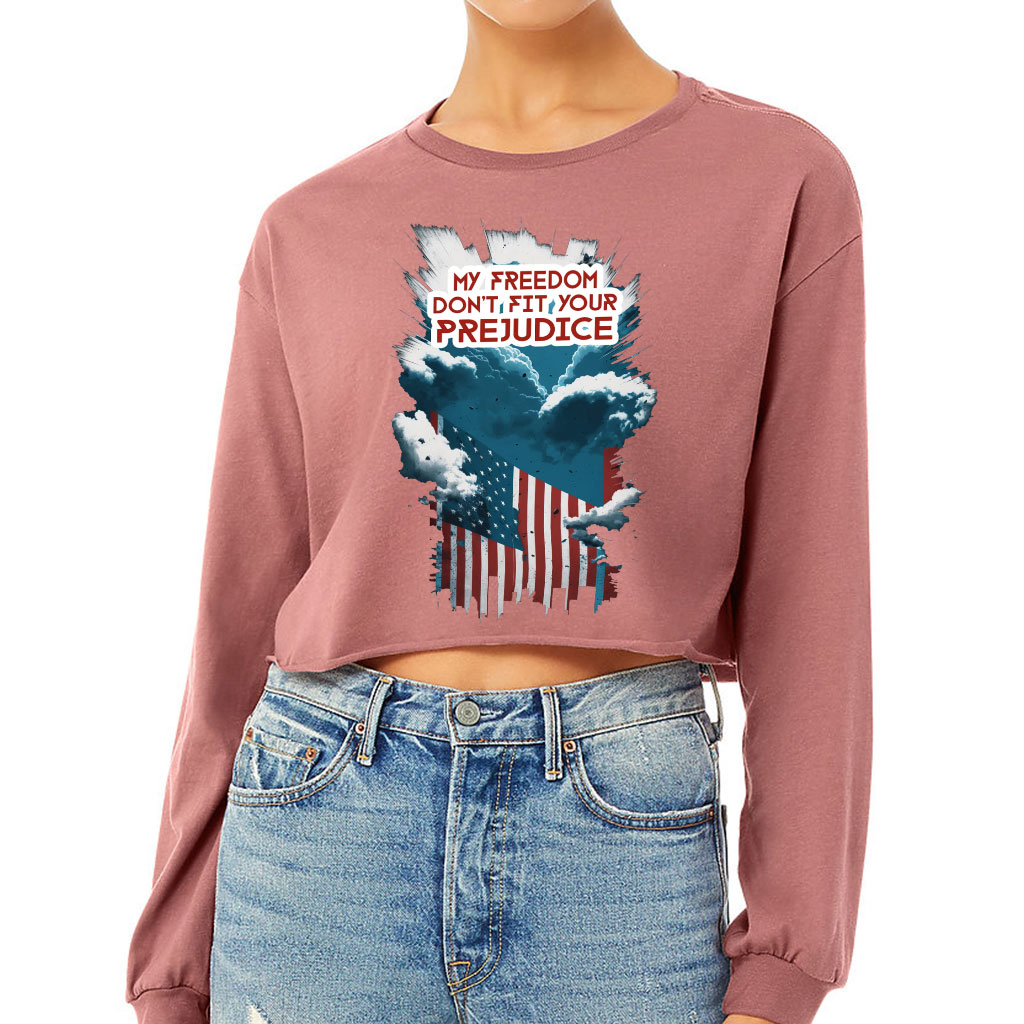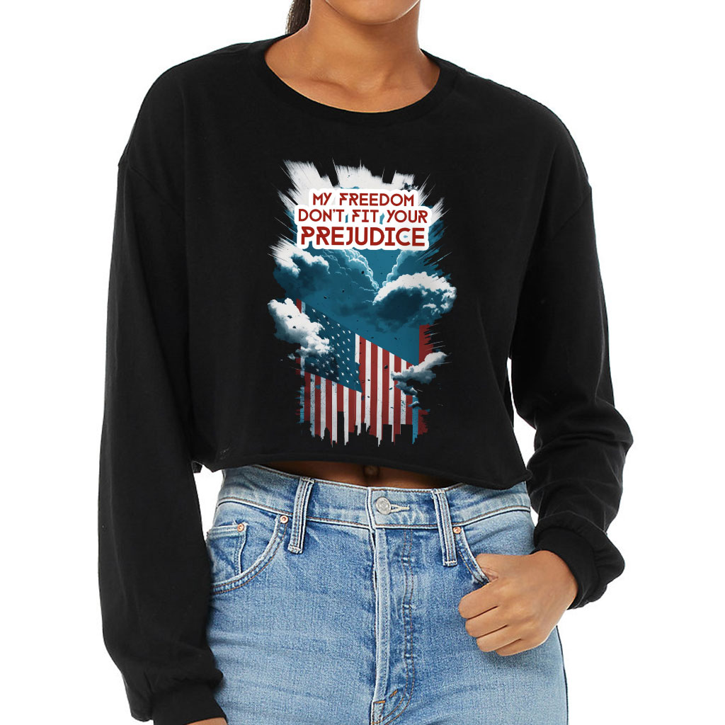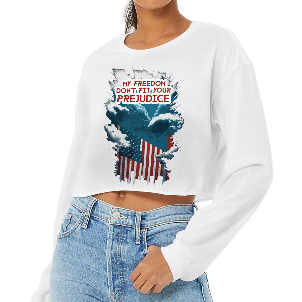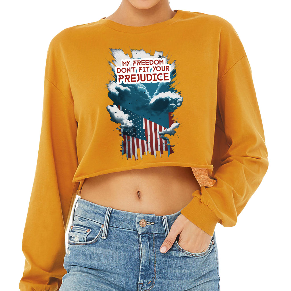 Patriotic Flag Cropped Long Sleeve T-Shirt – Gifts for USA Lovers – Great Gift