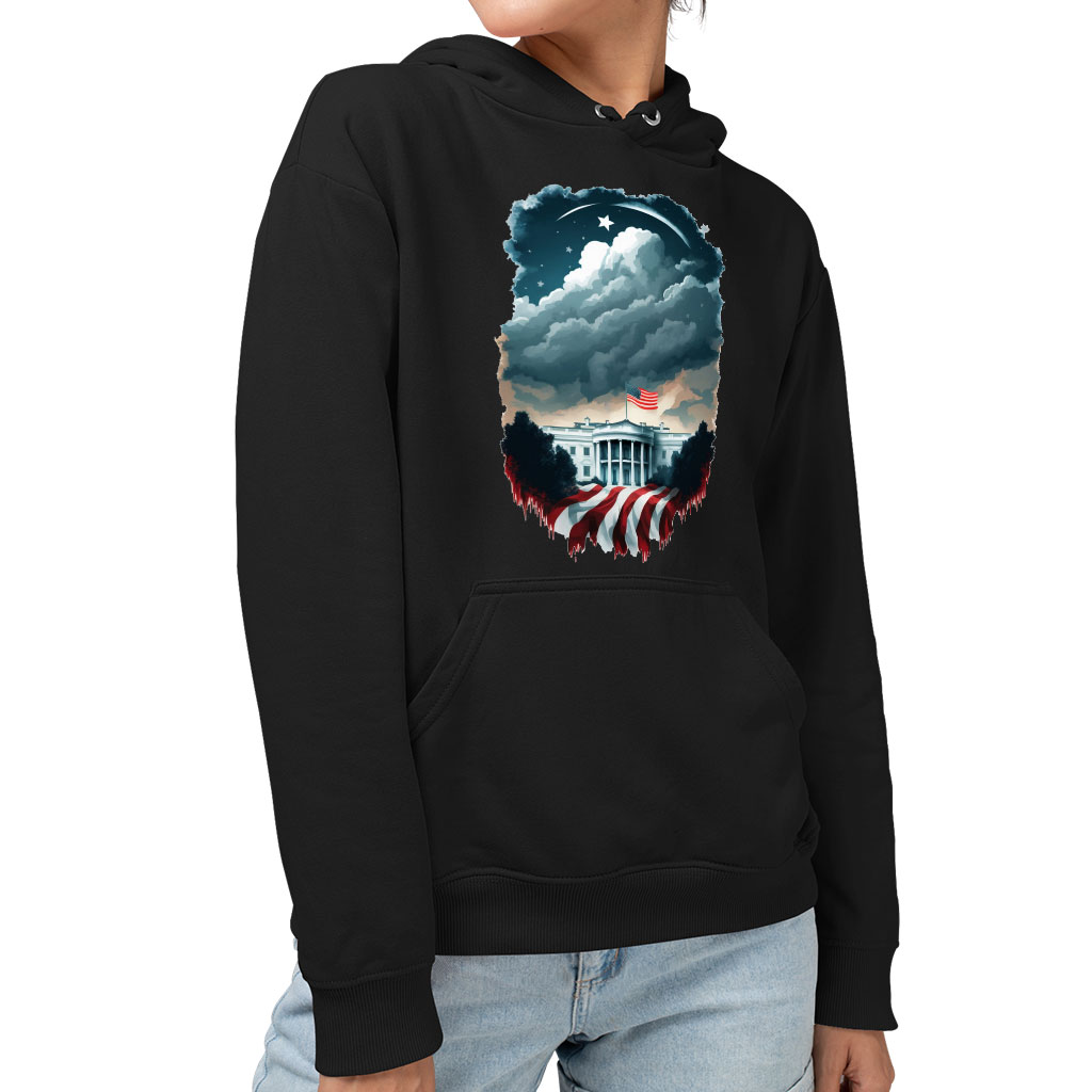 Look your best while staying comfortable in America Hoodie. Crafted with a modern retail fit, the hoodie features side-seamed detailing for improved shape retention — and you can always cinch it up with the white cord drawstring to make sure you look your best! Plus, Cool Hooded Sweatshirt is equipped with easy-access kangaroo pockets and ribbed cuffs and a waistband. With all these features in one classic wardrobe staple, you’ll be living in comfort all day! Grab yours today and experience true freedom of movement!