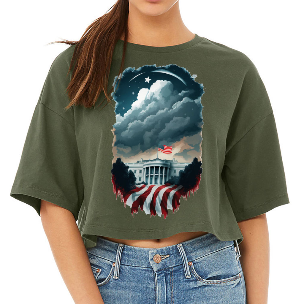 Patriotic Women’s Crop Tee Shirt – Cool Gifts – USA Lovers Items