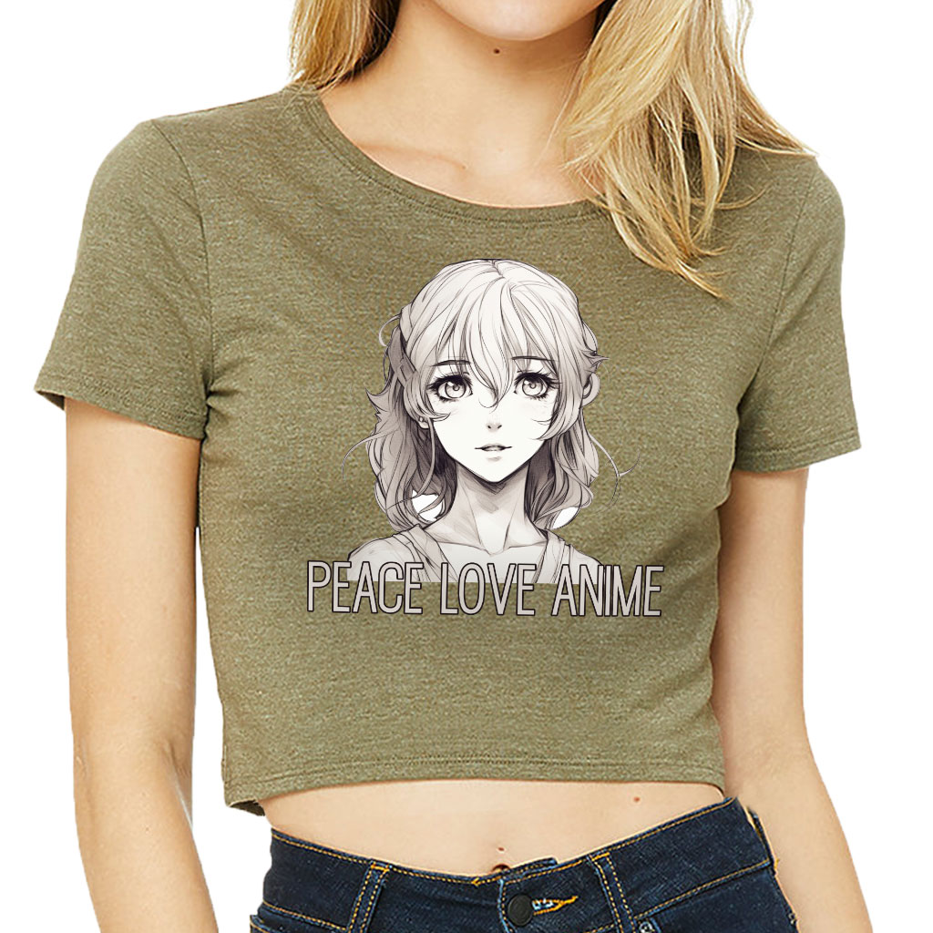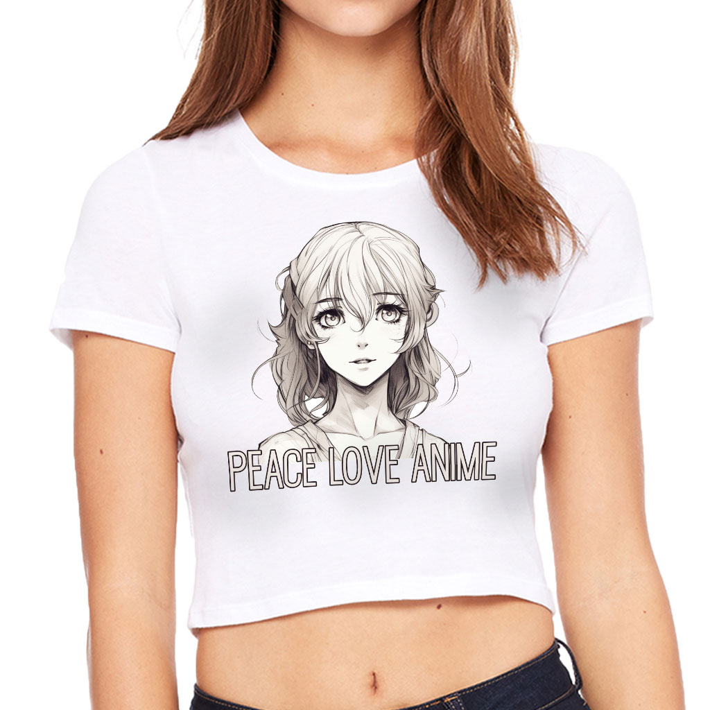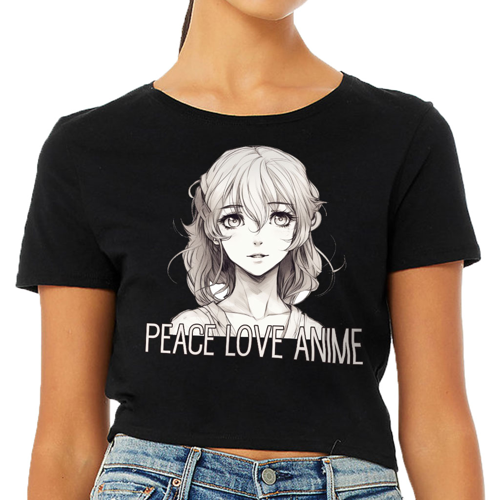 Peace Love Anime Cropped T-Shirt – Great Gift – Gifts for Anime Lovers