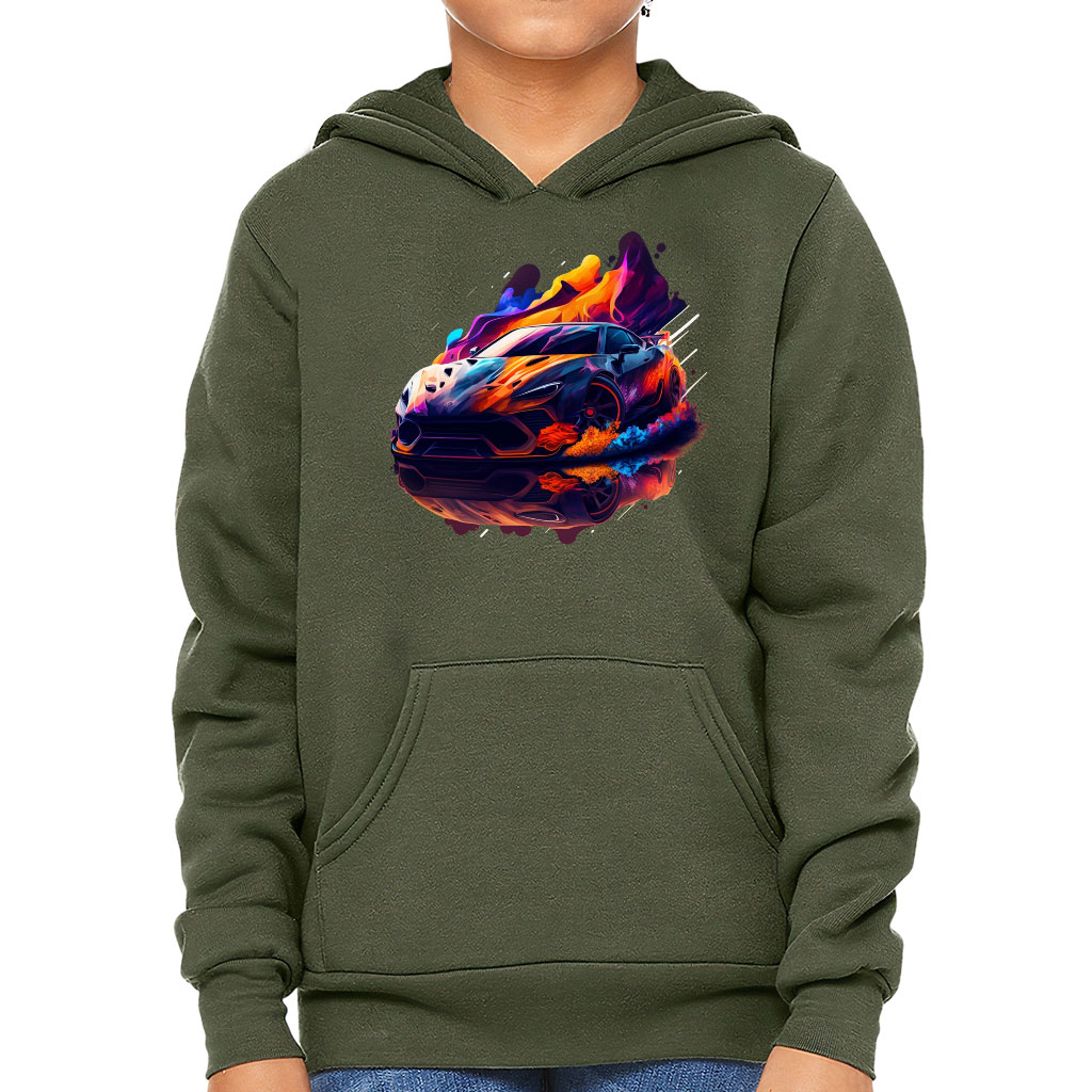 Race Car Kids’ Sponge Fleece Hoodie – Graffiti Kids’ Hoodie – Digital Art Hoodie for Kids