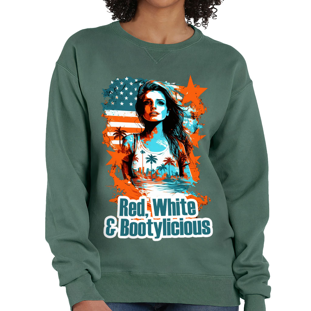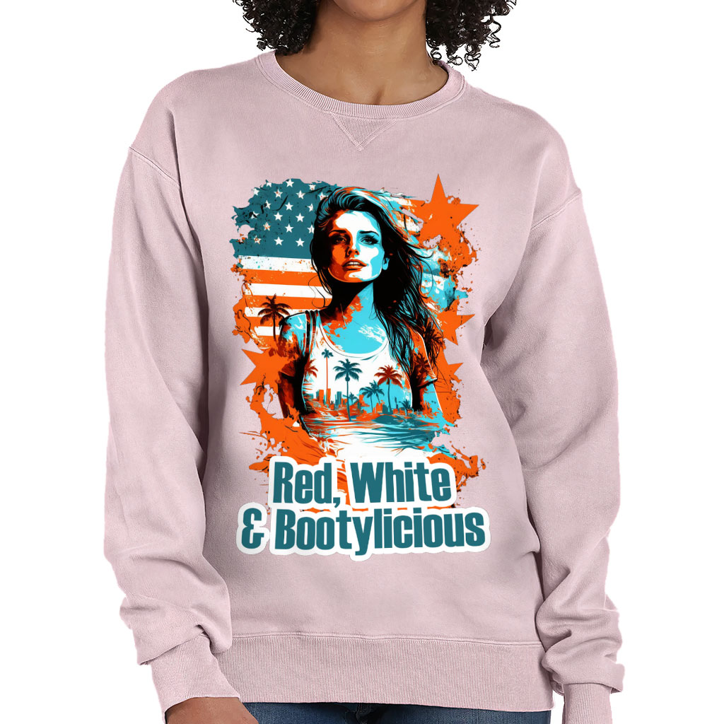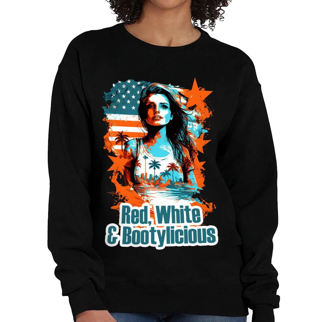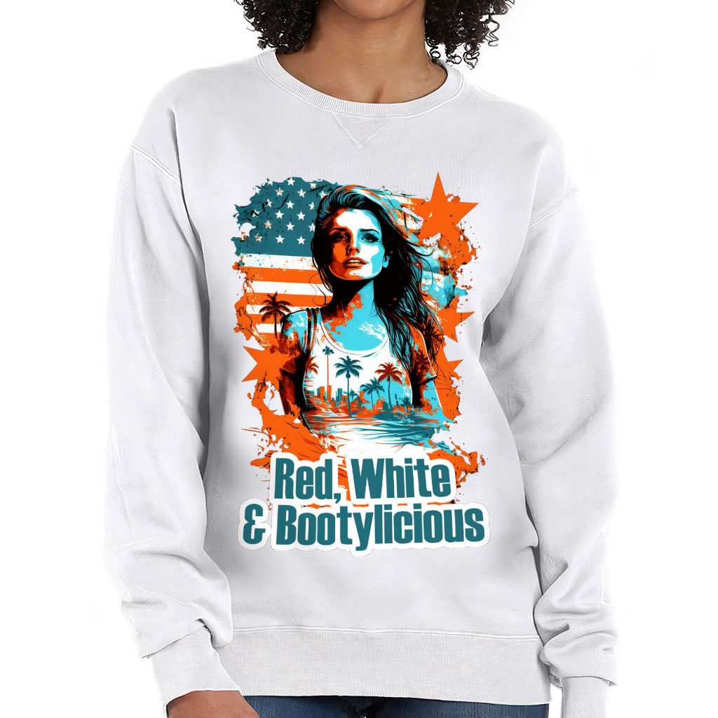 Red White and Bootylicious Crewneck Sweatshirt – Cute Women’s Sweatshirt – America Sweatshirt