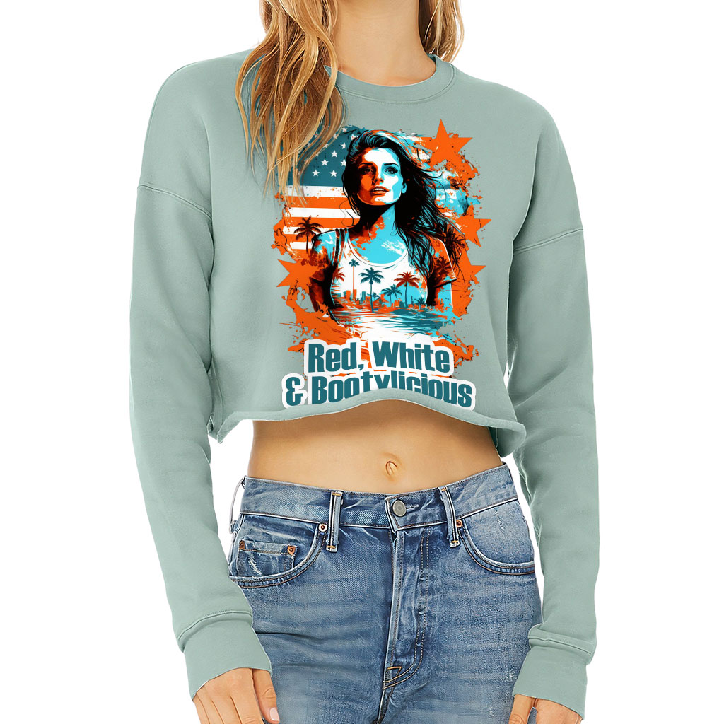 Red White and Bootylicious Cropped Sweatshirt – Cute Women’s Sweatshirt – America Crop Crew Sweatshirt