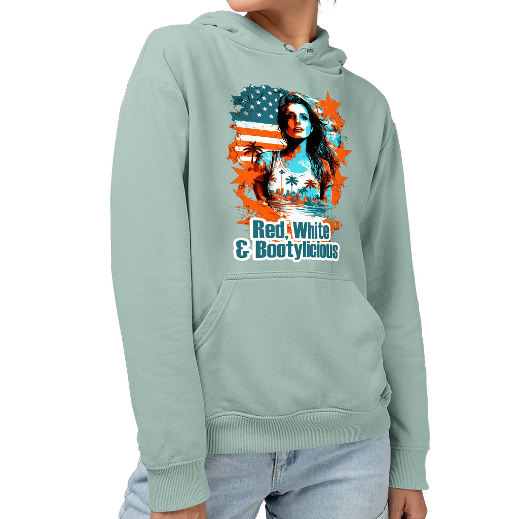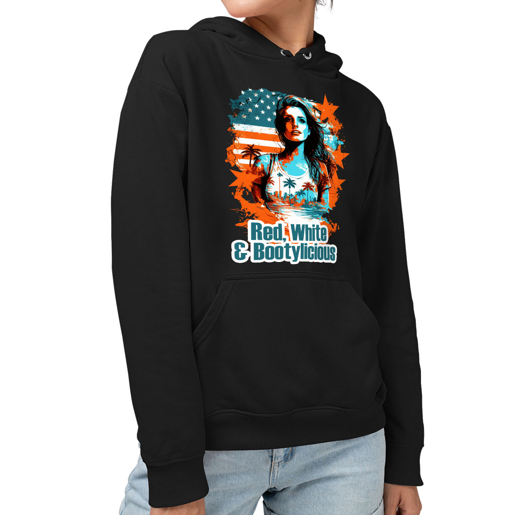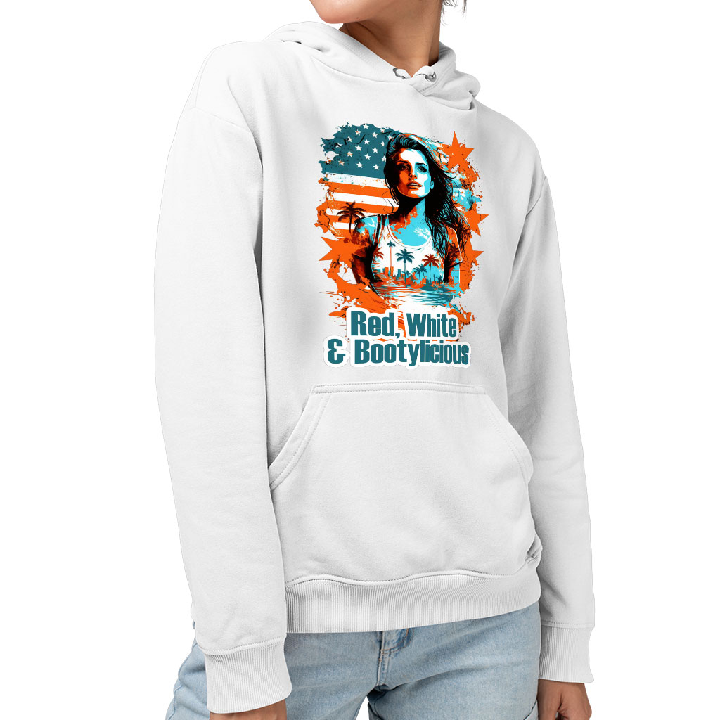 Red White and Bootylicious Sponge Fleece Hoodie – Cute Hoodie – America Hooded Sweatshirt