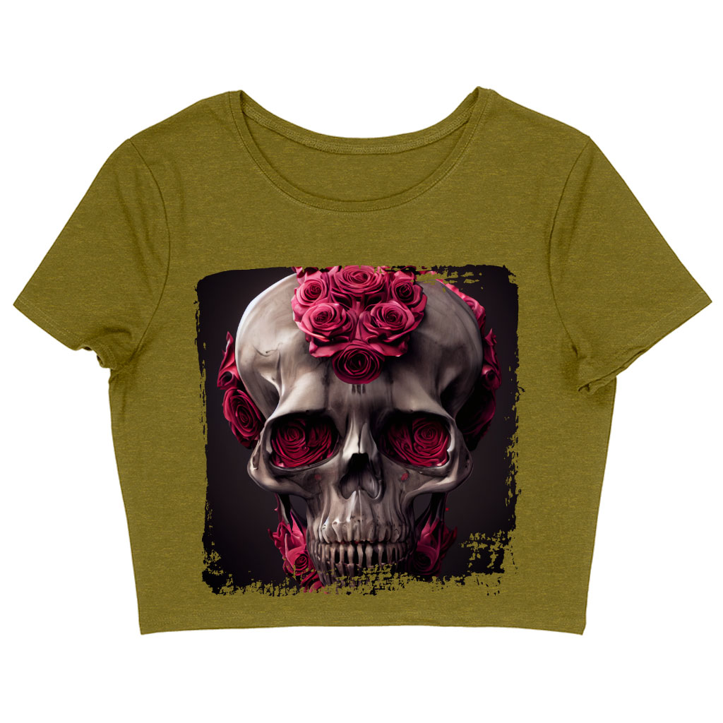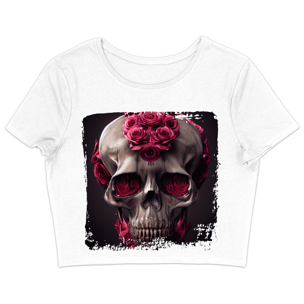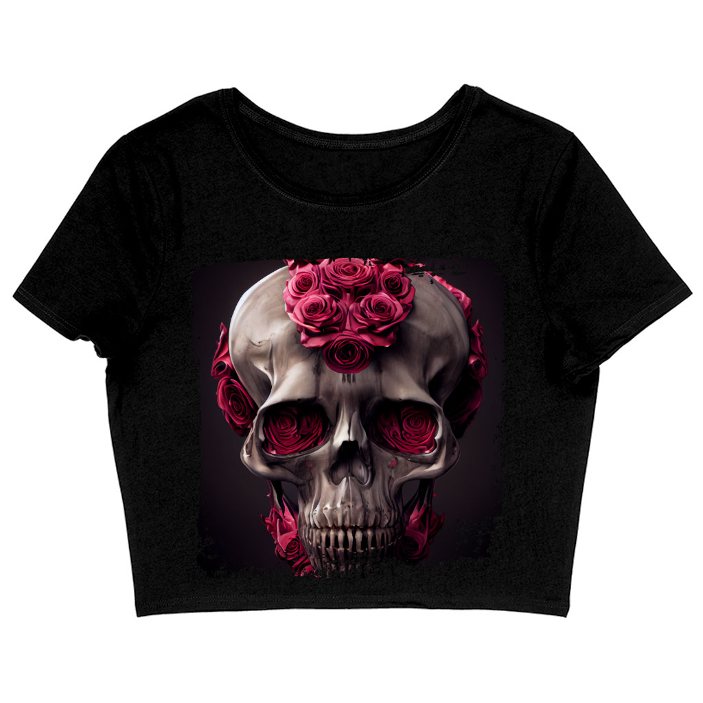 Rose Design Women’s Cropped T-Shirt – Skull Crop Top – Gothic Crop Tee Shirt