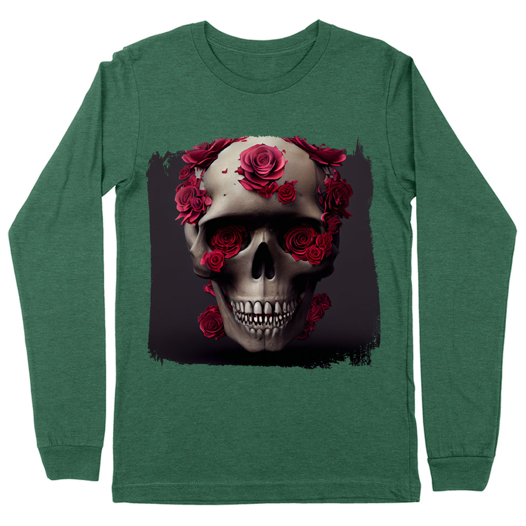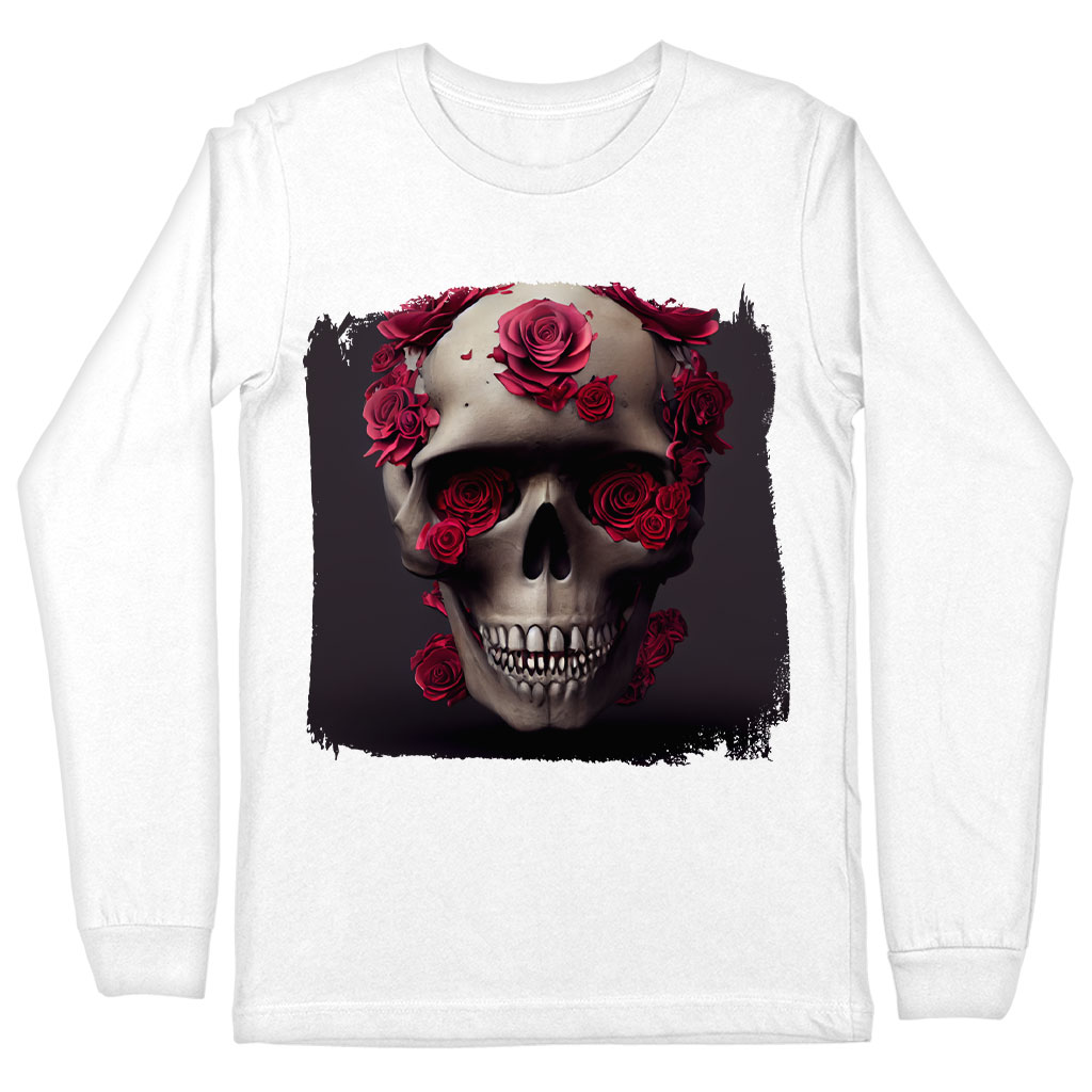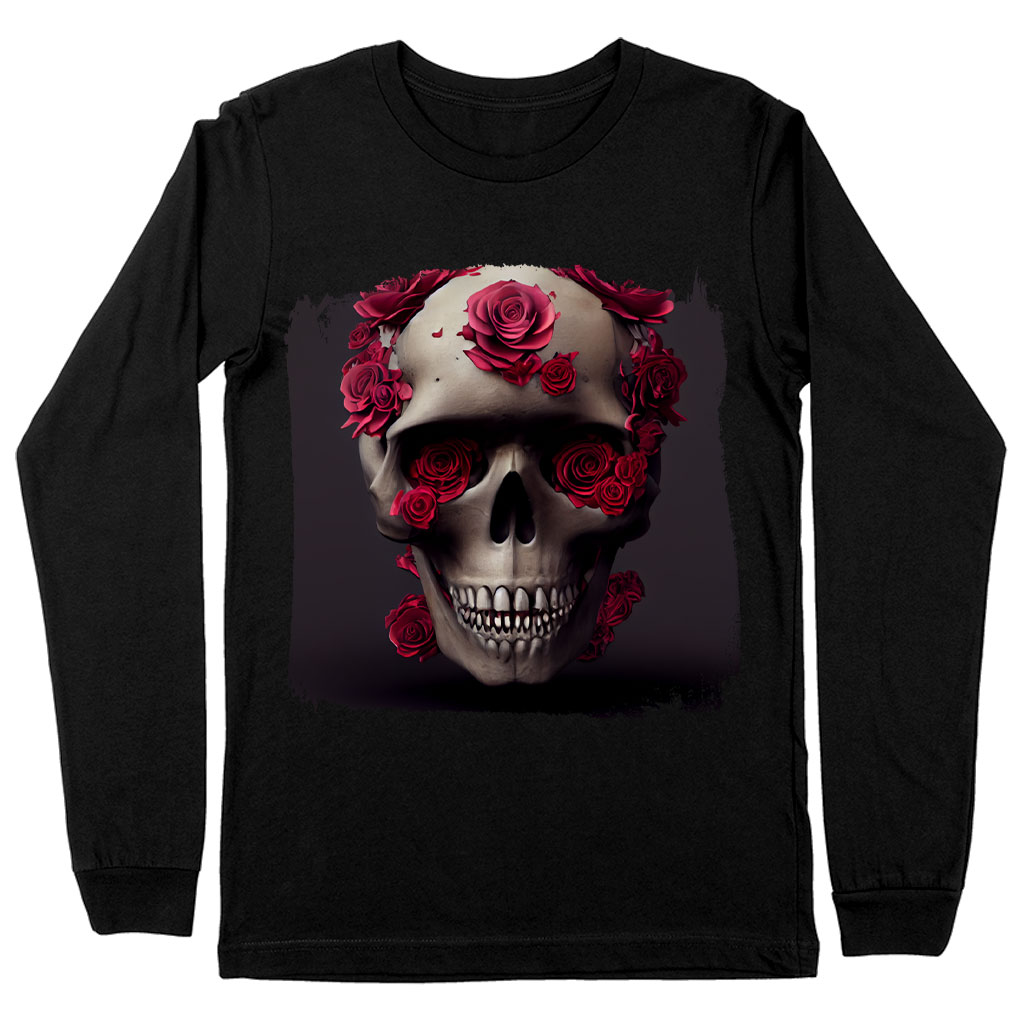 Skull and Roses Long Sleeve T-Shirt – Print T-Shirt – Flower Long Sleeve Tee Shirt