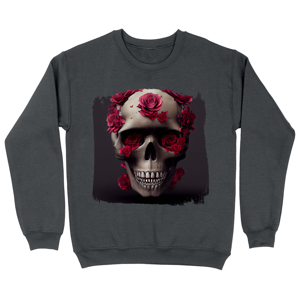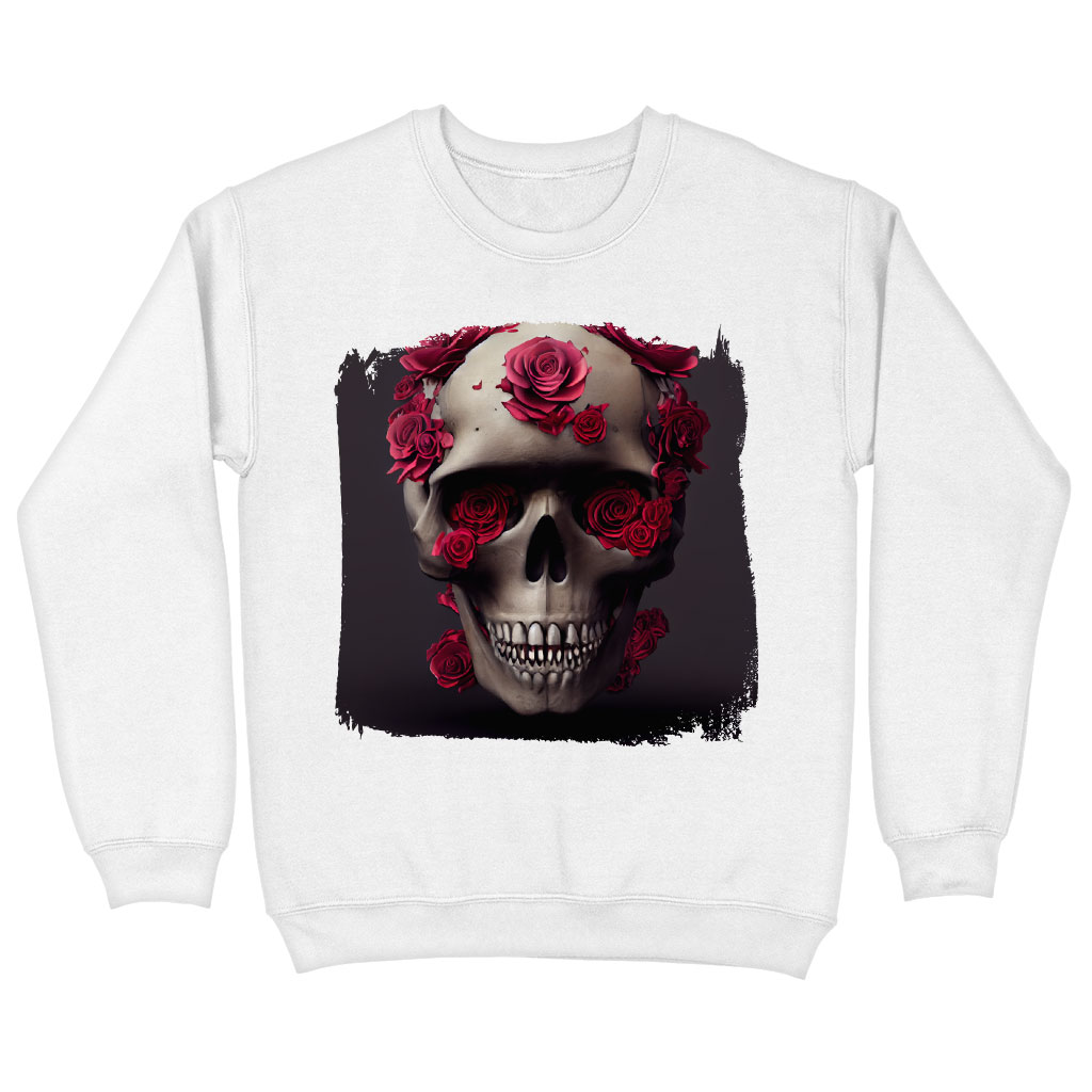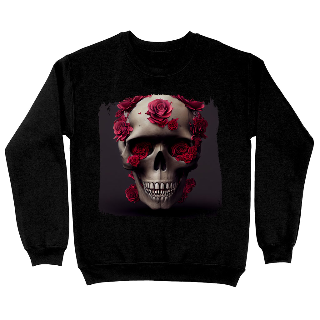 Skull and Roses Sweatshirt – Print Crewneck Sweatshirt – Flower Sweatshirt