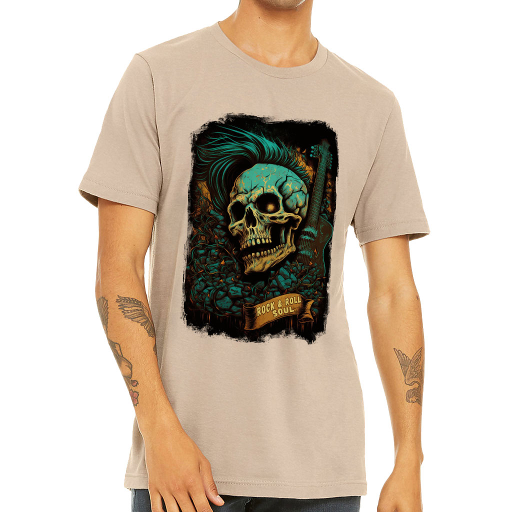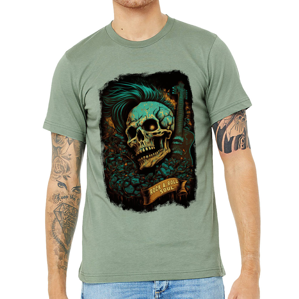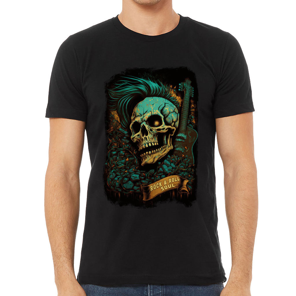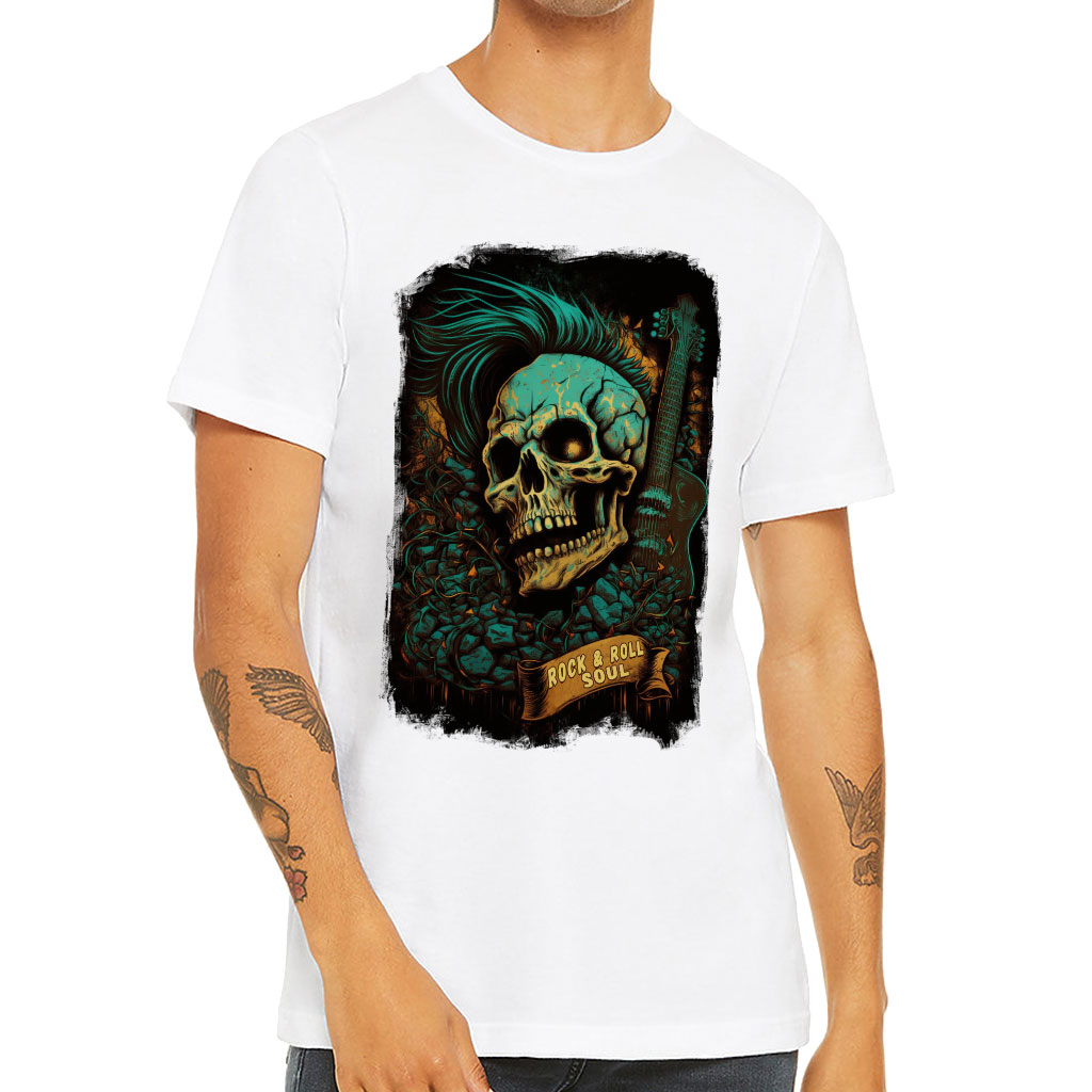 Skull Print Short Sleeve T-Shirt – Themed T-Shirt – Guitar Short Sleeve Tee