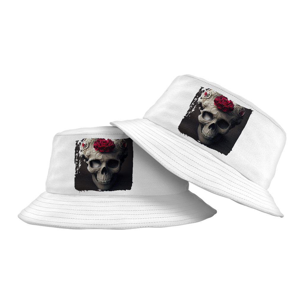 Skull Rose Bucket Hat – Gothic Hat – Floral Bucket Hat