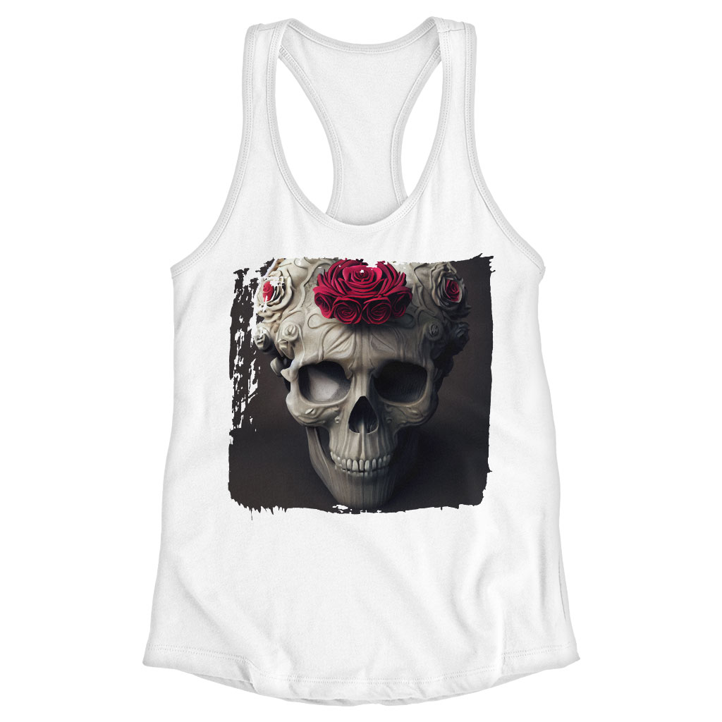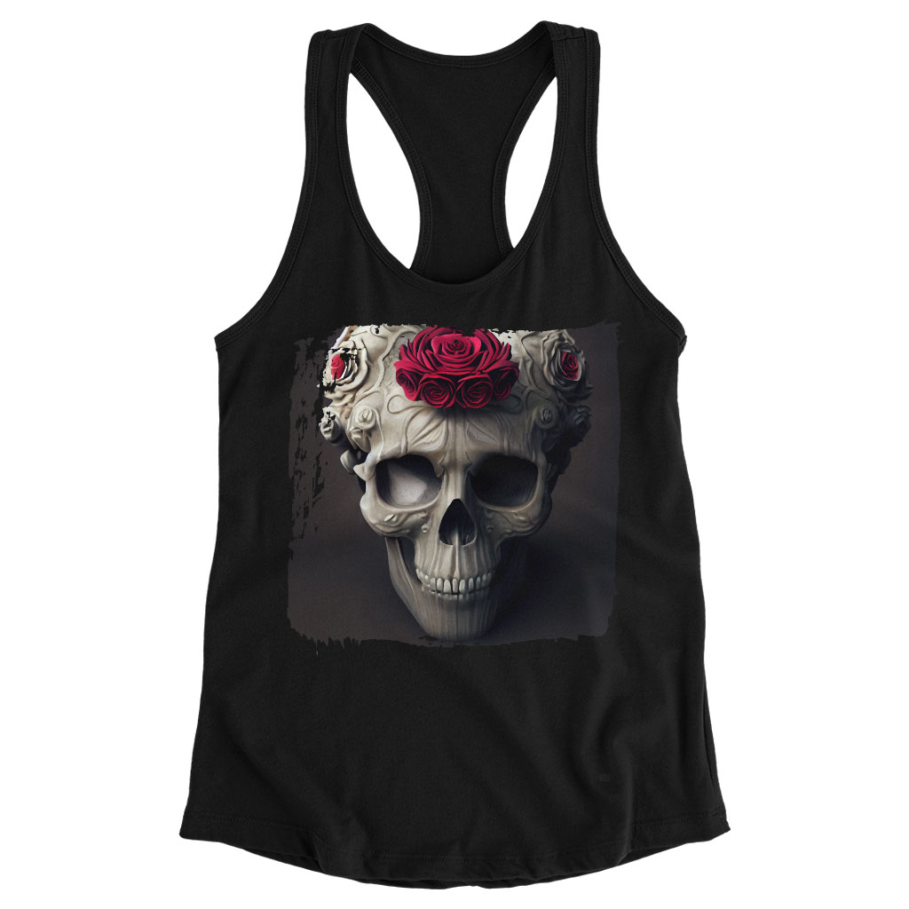 Skull Rose Racerback Tank – Gothic Tank – Floral Workout Tank