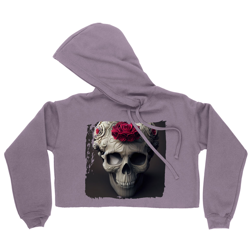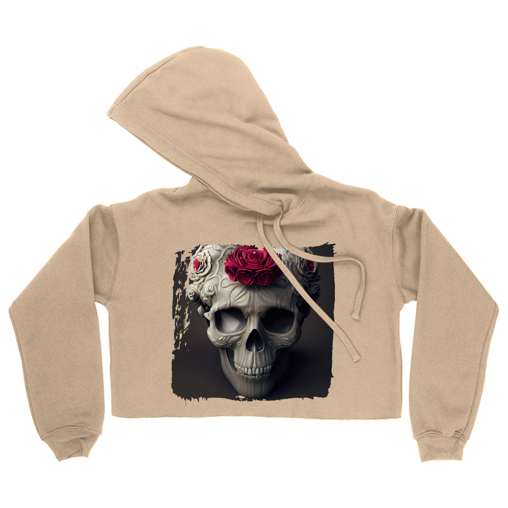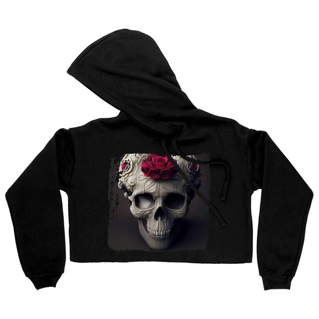 Skull Rose Women’s Cropped Hoodie – Gothic Cropped Hoodie – Floral Hooded Sweatshirt