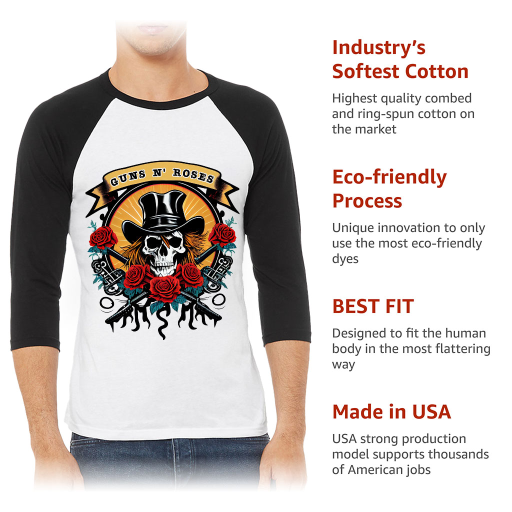 features raglan 3/4 sleeves and a modern fit that is perfect for a day