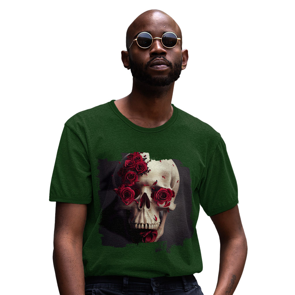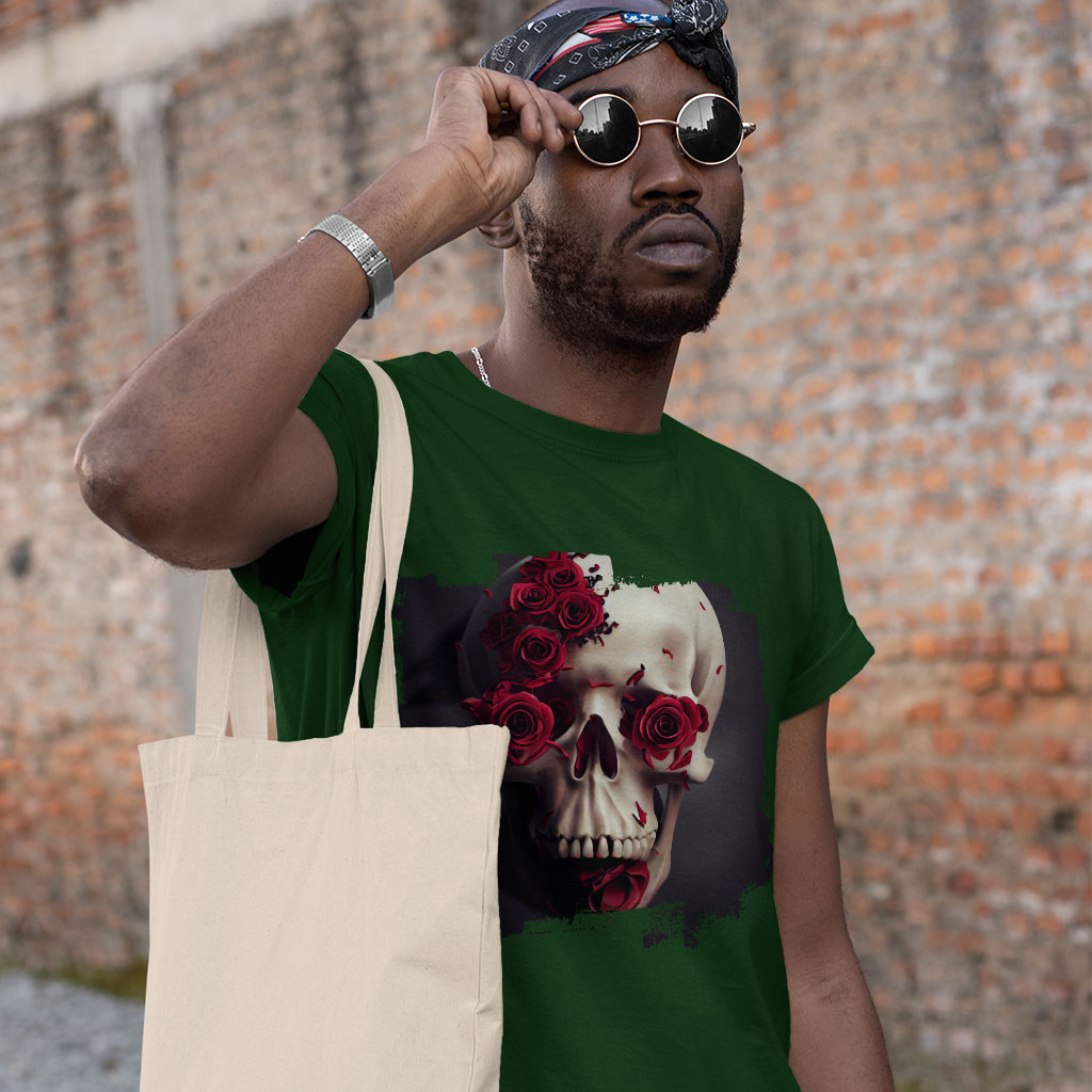 Skull With Roses Heavy Cotton T-Shirt – Flower Tee Shirt – Art T-Shirt