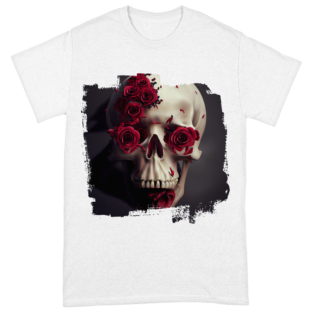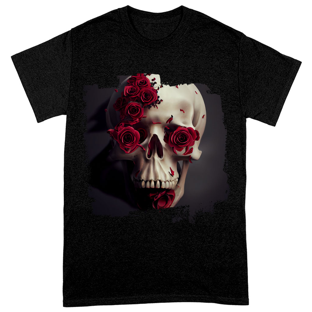 Skull With Roses Heavy Cotton T-Shirt – Flower Tee Shirt – Art T-Shirt