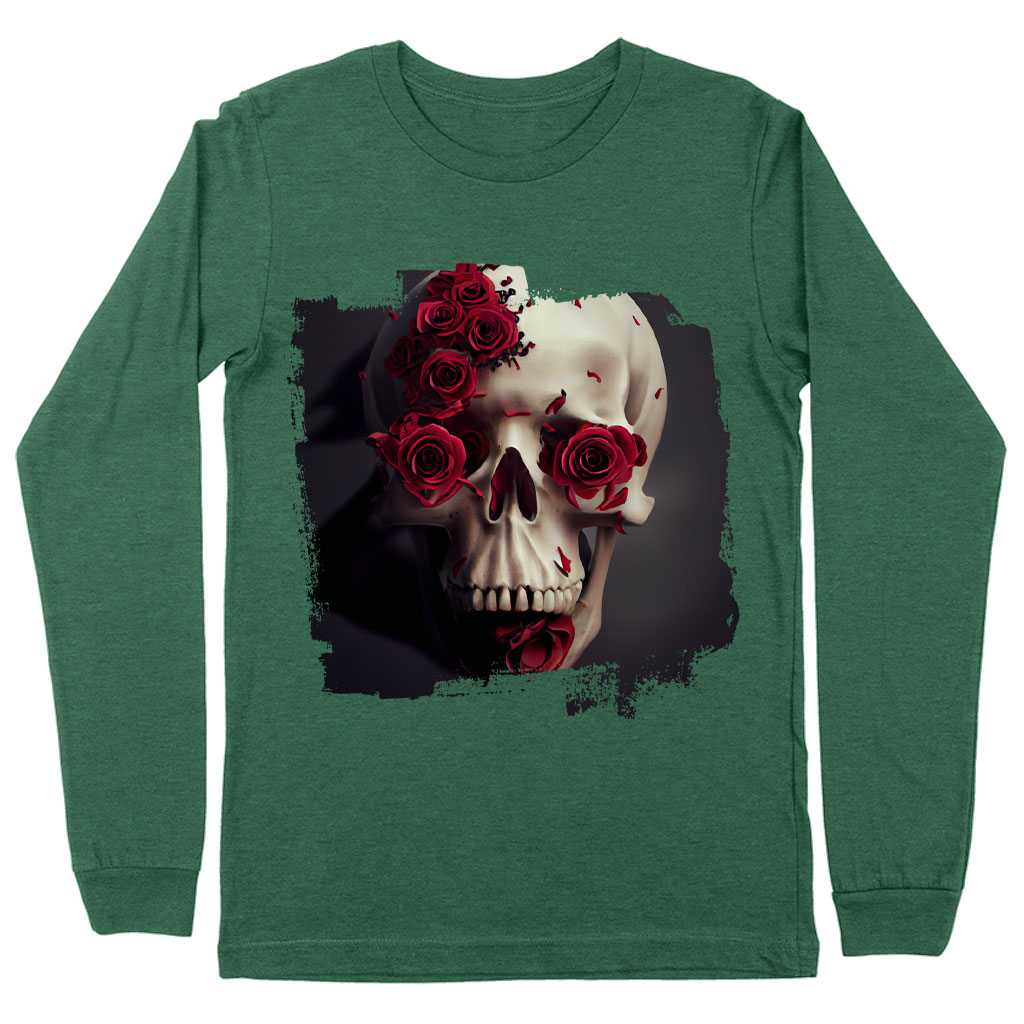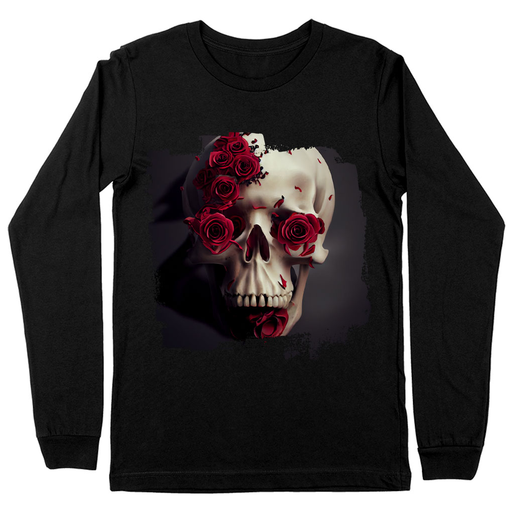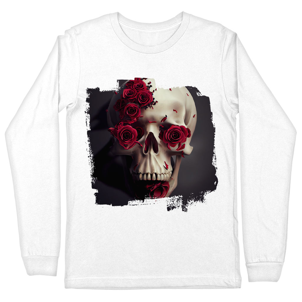 Skull With Roses Long Sleeve T-Shirt – Flower T-Shirt – Art Long Sleeve Tee Shirt