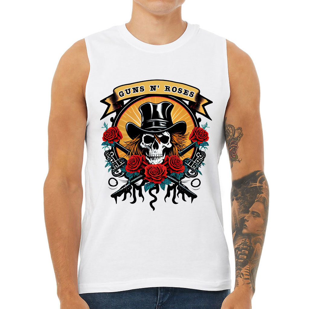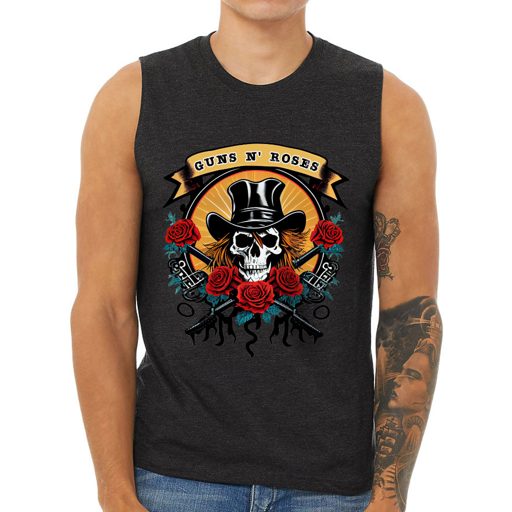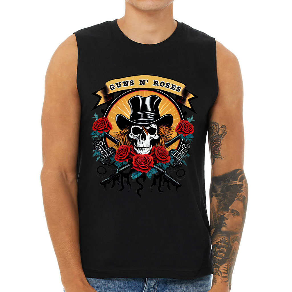 Skull With Roses Men’s Muscle Tank When it comes to comfort and style, nothing beats Music Men’s Sleeveless T-Shirt. The side-seamed construction adds a contemporary touch and the retail fit ensures a perfect fit every time. Whether you’re in the gym or out on the town, you’ll look great and…
