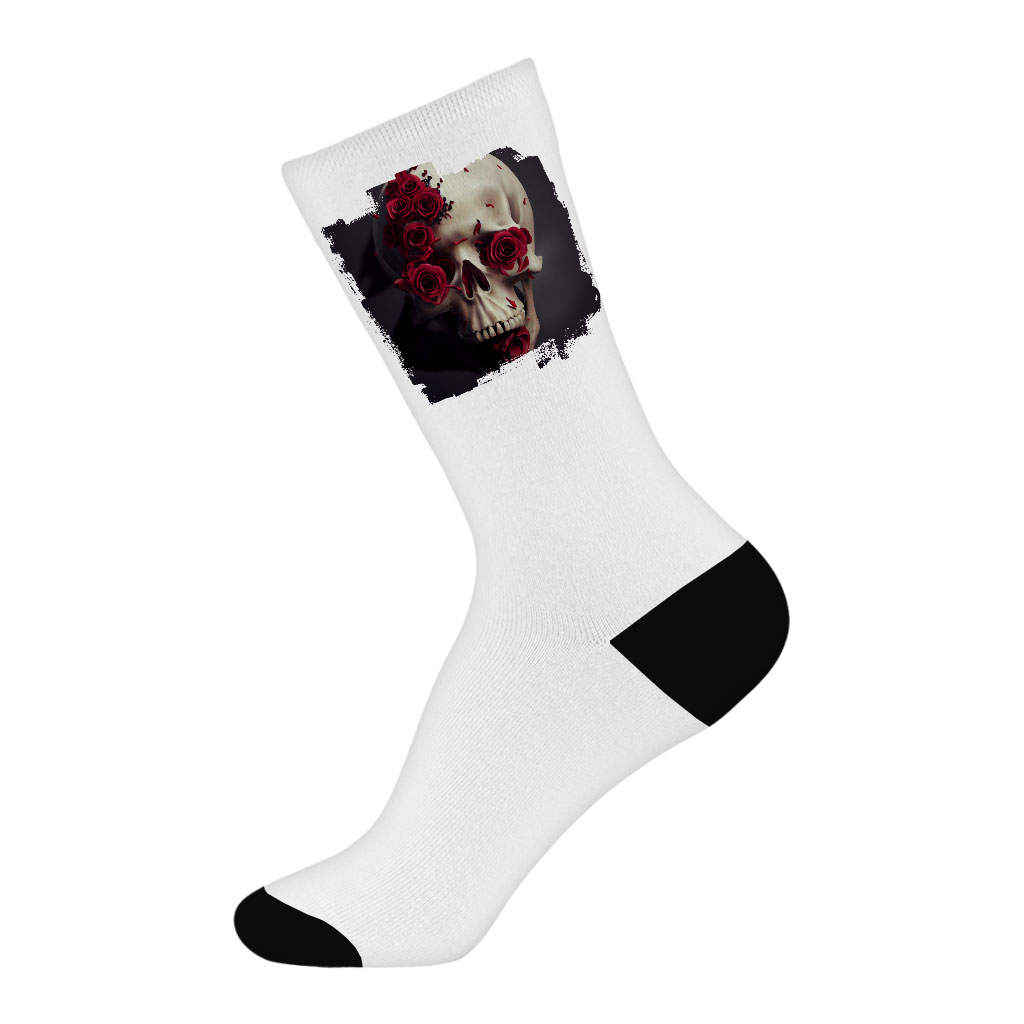 Skull With Roses Socks – Flower Novelty Socks – Art Crew Socks