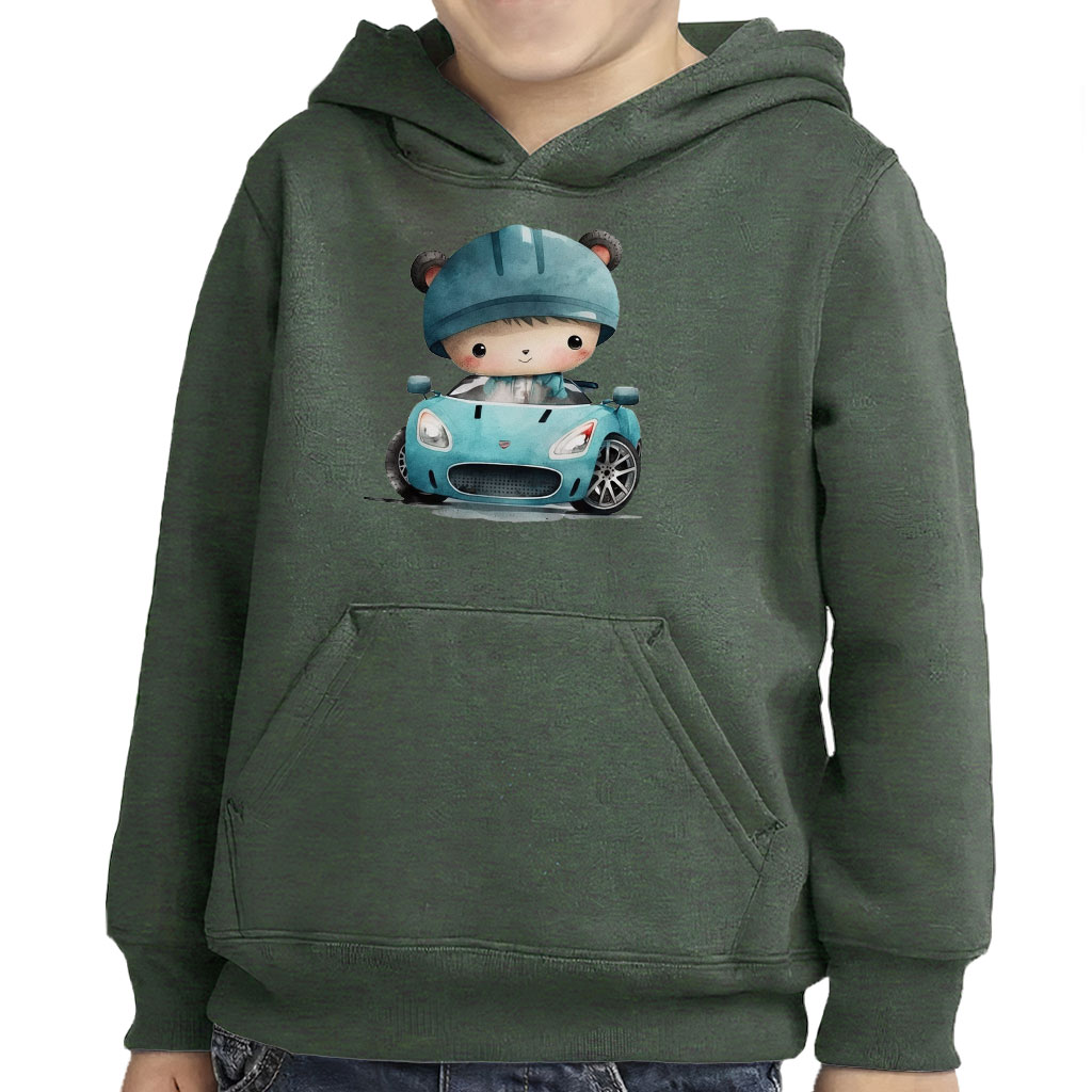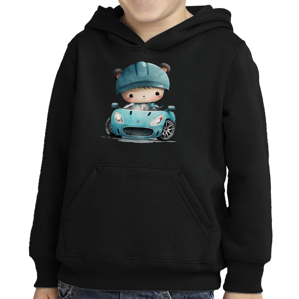 Sport Car Design Toddler Pullover Hoodie – Kawaii Sponge Fleece Hoodie – Printed Hoodie for Kids