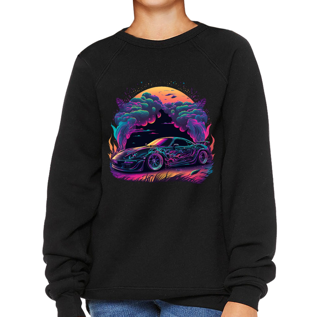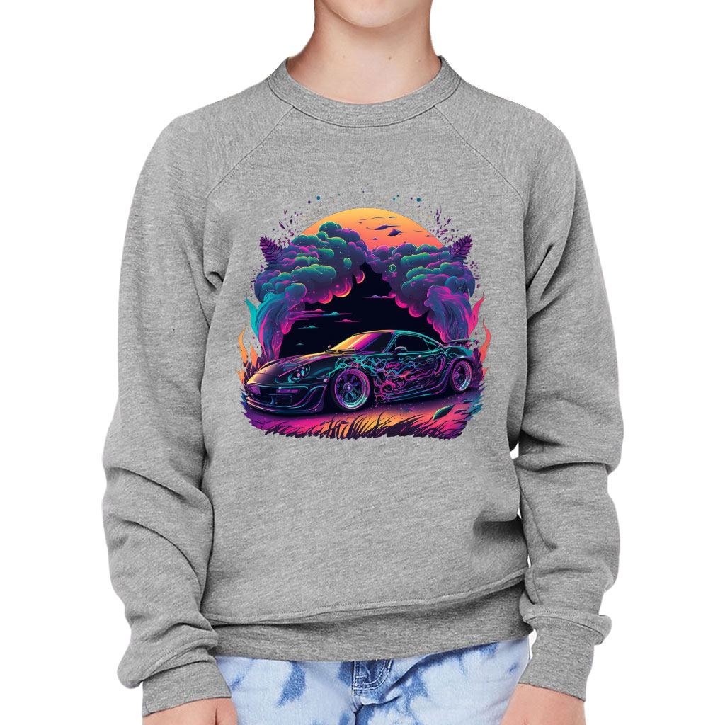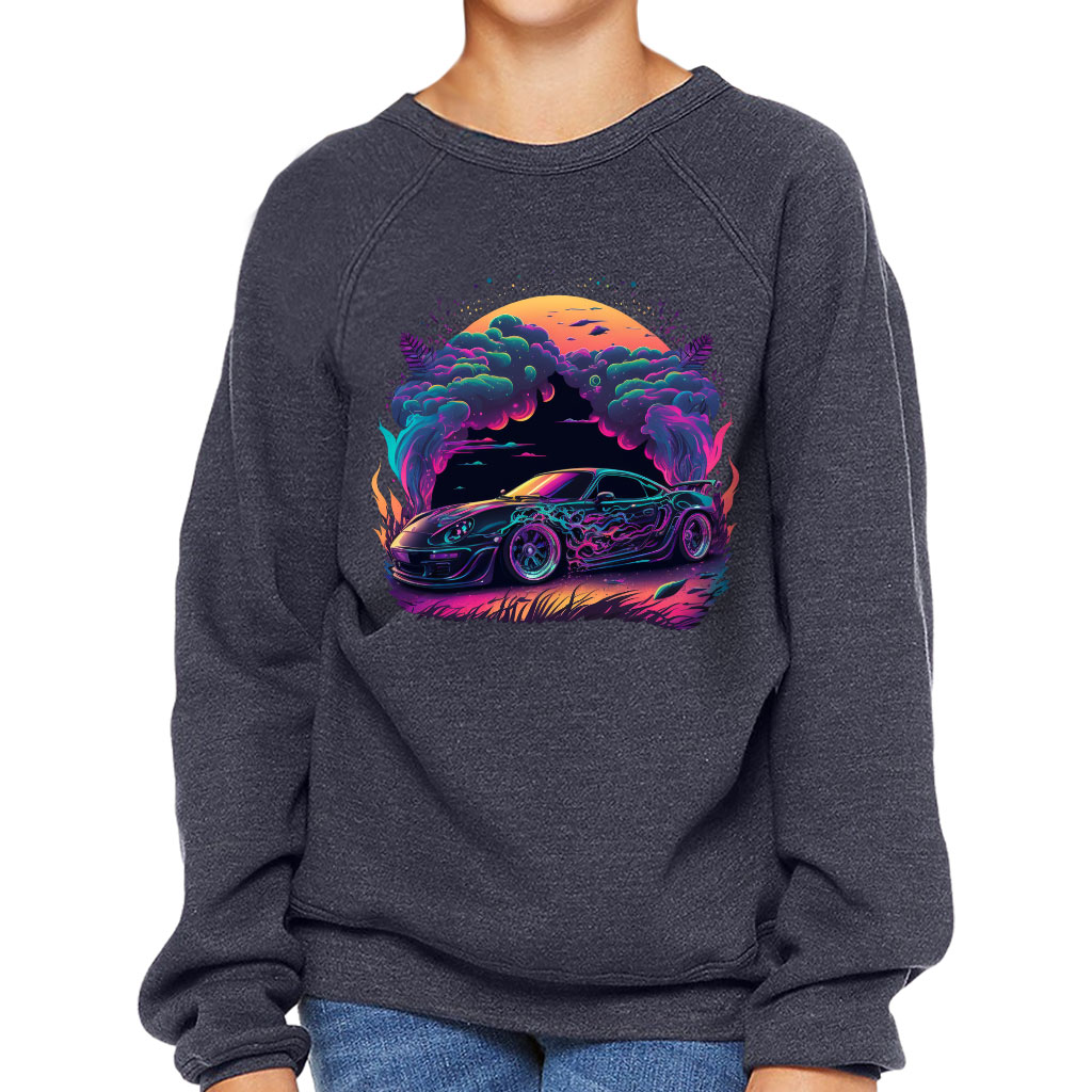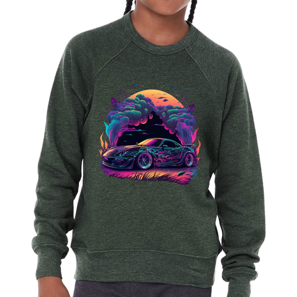 Sport Car Kids’ Raglan Sweatshirt – Cool Graphic Sponge Fleece Sweatshirt – Printed Sweatshirt