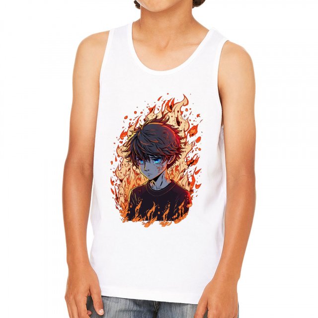Flame Design Kids’ Jersey Tank – Fire Sleeveless T-Shirt – Graphic Kids’ Tank Top