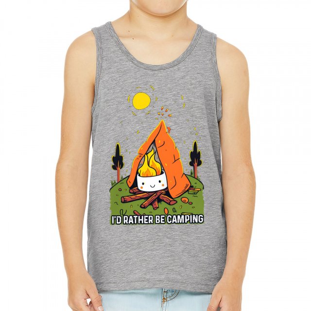 I’d Rather Be Camping Kids’ Jersey Tank – Cute Kawaii Sleeveless T-Shirt – Adorable Kids’ Tank Top